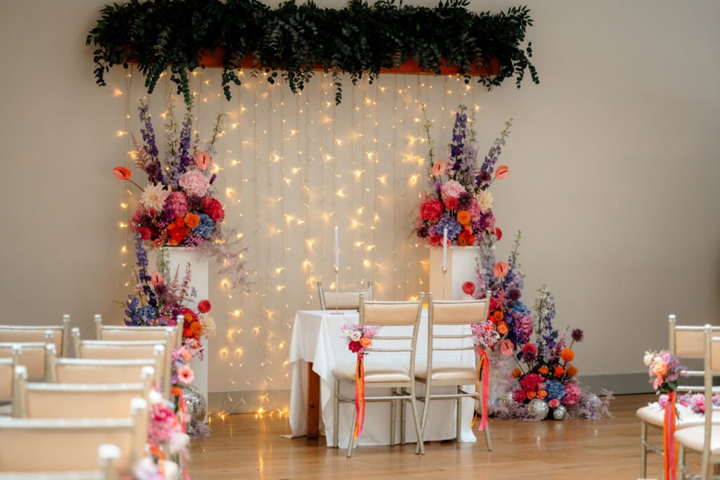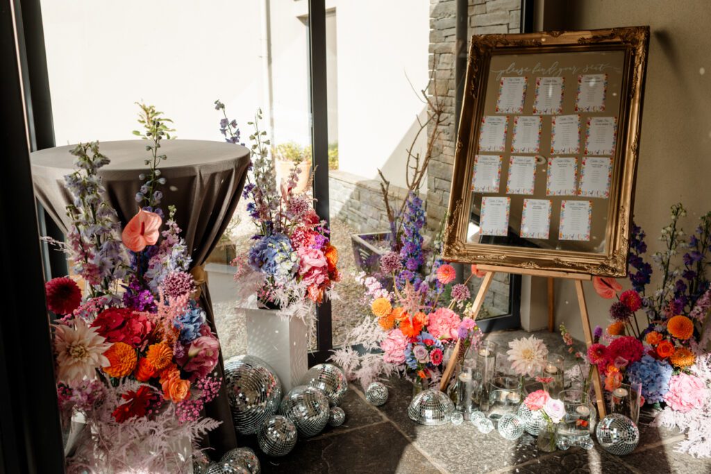 The decor was something that was so important to me. I knew I wanted colour and fun so we decided to add in disco balls to reflect our fun loving party side. I wanted floral arrangements that wowed people and I think that was definitely achieved thanks to Ríona who was always there to bounce ideas off. She brought my vision to life