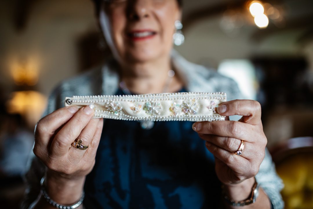 I used the cuff from my mother’s wedding dress as my ‘something old’ – wrapped around my bouquet.