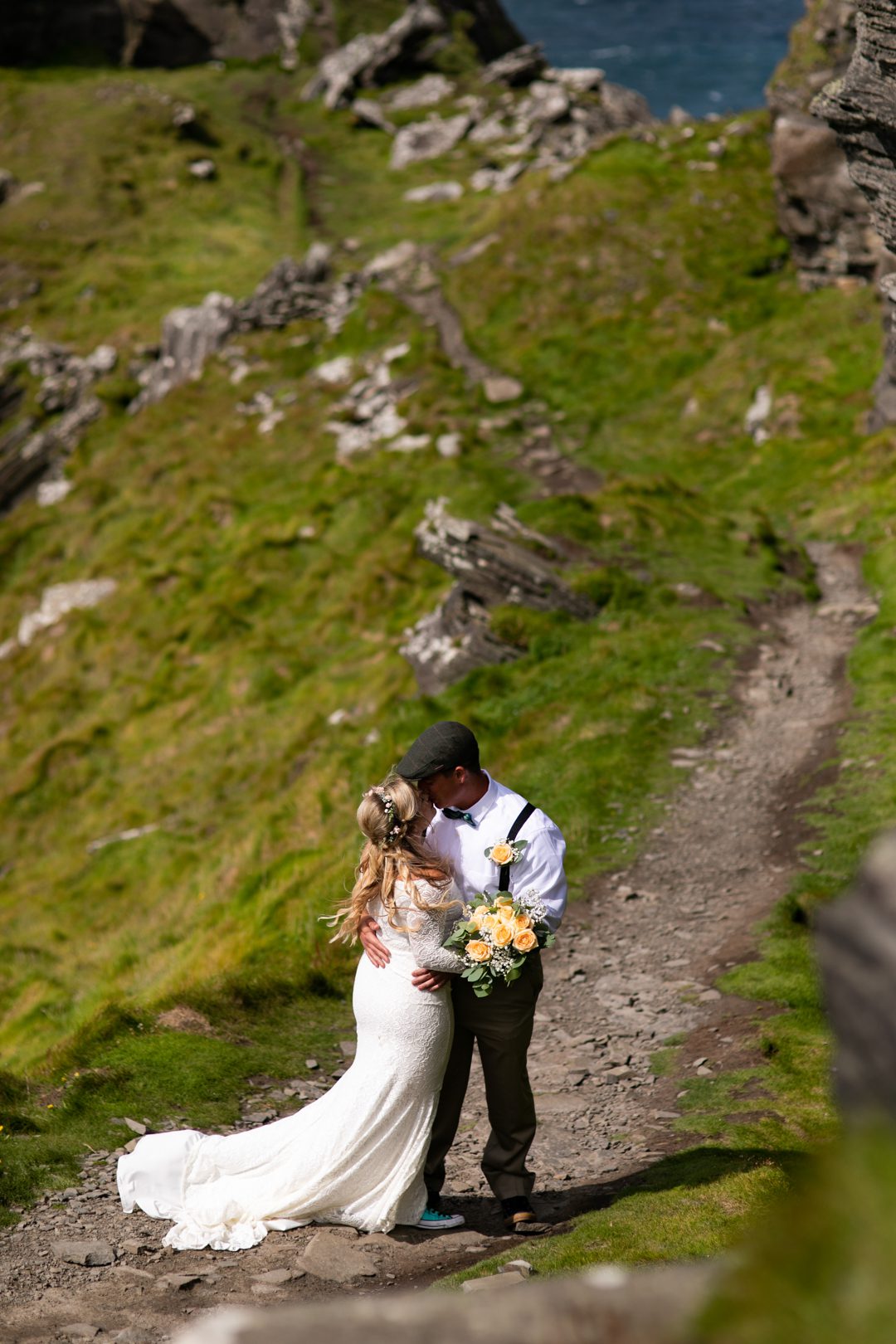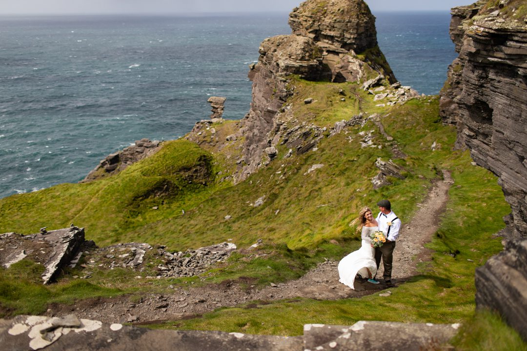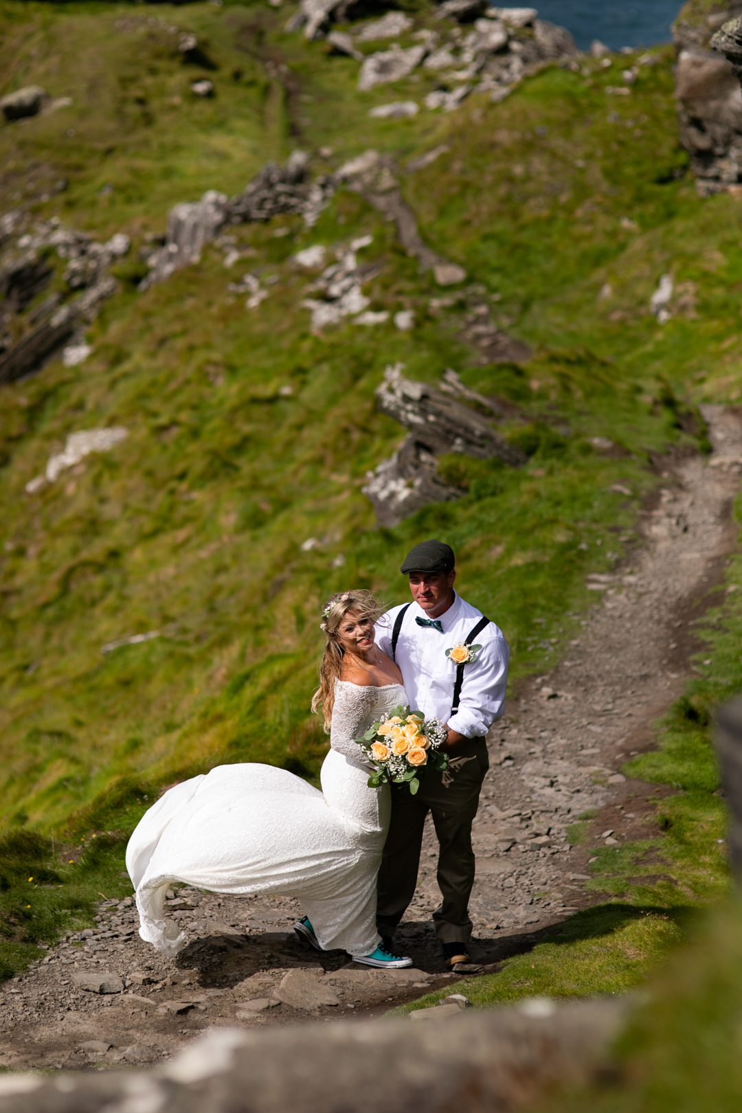 - cliffs of moher, wedding Ireland, irish bride, bride and groom, cliff shot, wild atlantic wedding, irish wedding, irish wedding photographer, wedding at cliffs, cliffs of moher bride, Ireland, destination Ireland, cliffs of moher photographer, Elope in Ireland, cliffs of Moher Ireland,