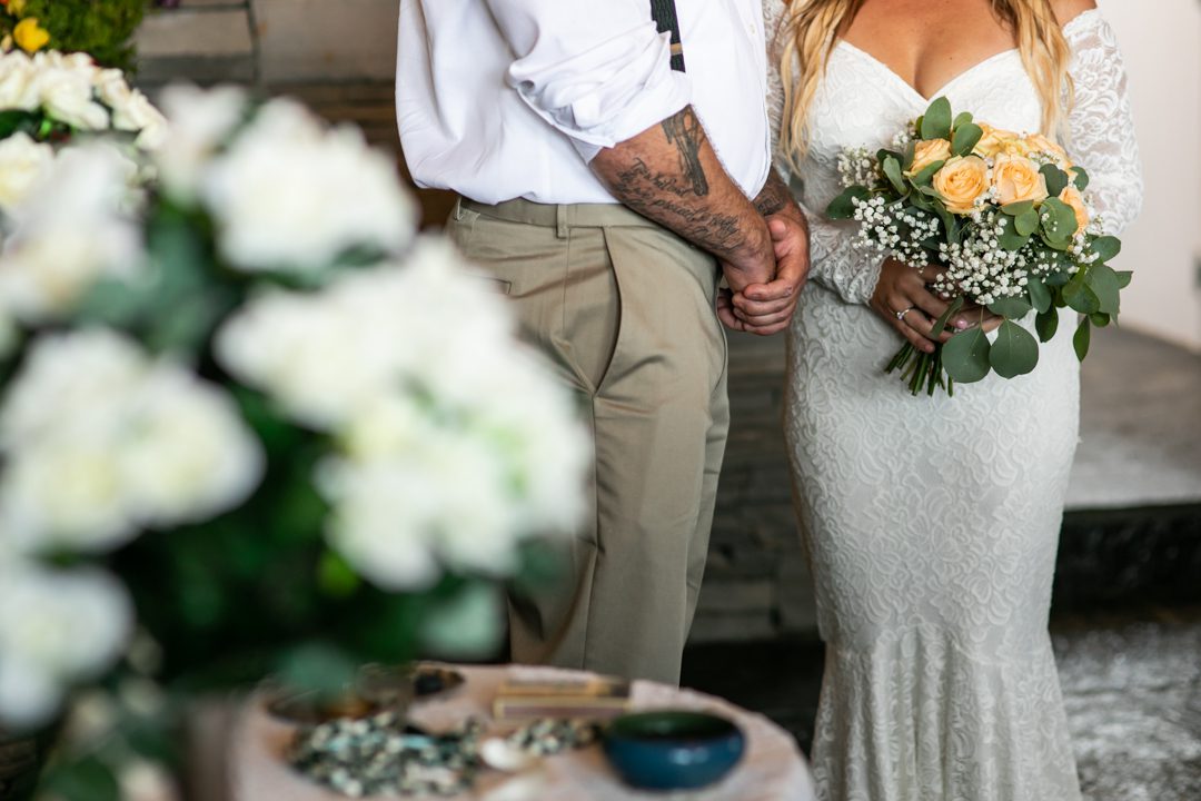 The day was special because everything that we chose was just about us. There were no distractions, nothing to worry about and we got to focus on each other. Being far from family I knew that I still wanted to have some special things from home so I had my grandma’s wedding rings on a pendant, the earrings I wore were made from the ring my dad gave my mom, and I had a sixpence from one of my older sister’s.
