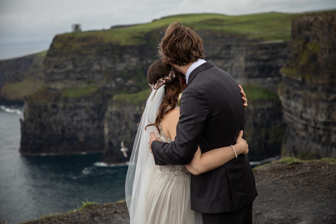 - cliffs of moher, wedding Ireland, irish bride, bride and groom, cliff shot, wild atlantic wedding, irish wedding, irish wedding photographer, wedding at cliffs, cliffs of moher bride, Ireland, destination Ireland, cliffs of moher photographer, Elope in Ireland, cliffs of Moher Ireland,