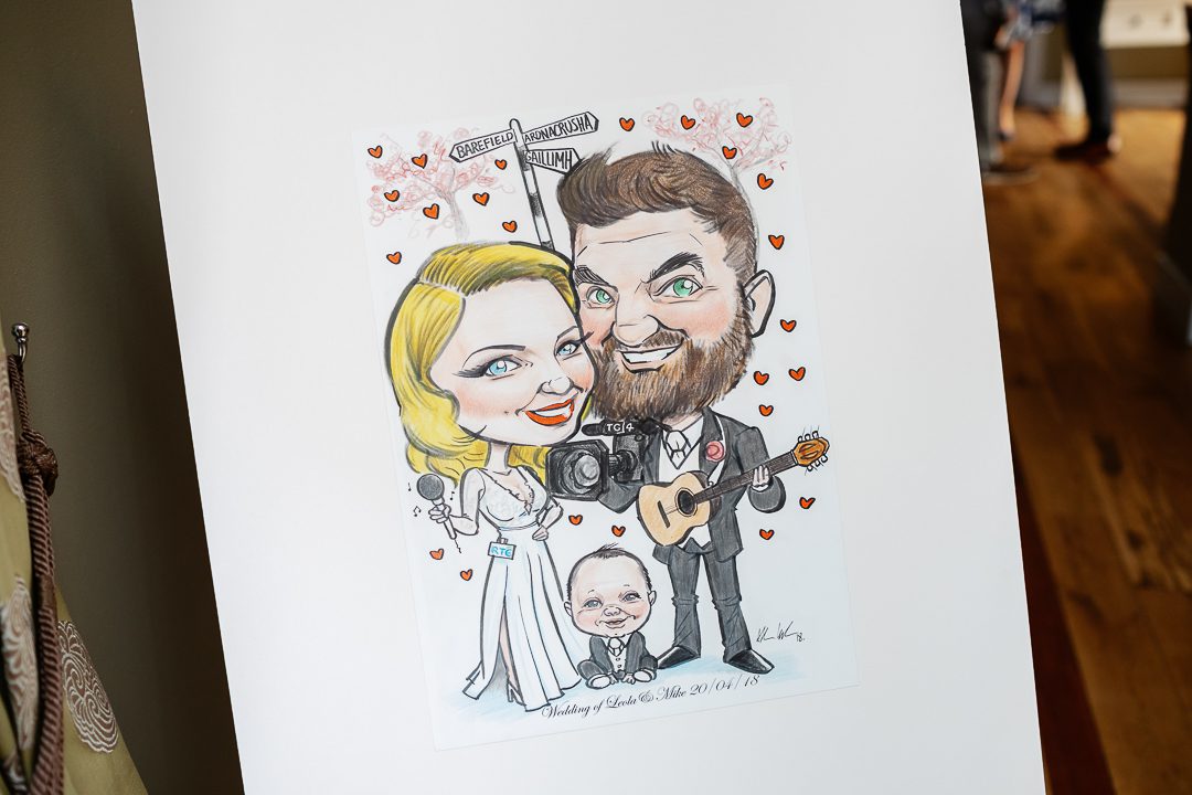 Stationery: Mike designed the invites using Photoshop incorporating a caricature (https://www.caricatures-ireland.com/) we had for a signing board on the day.
