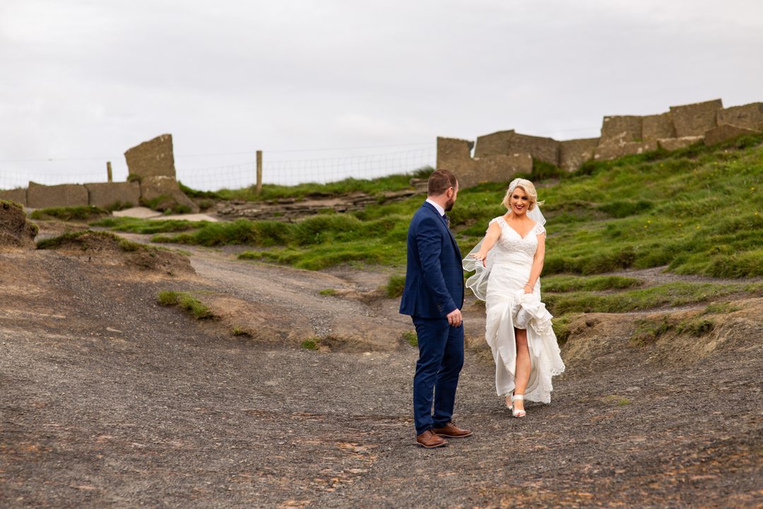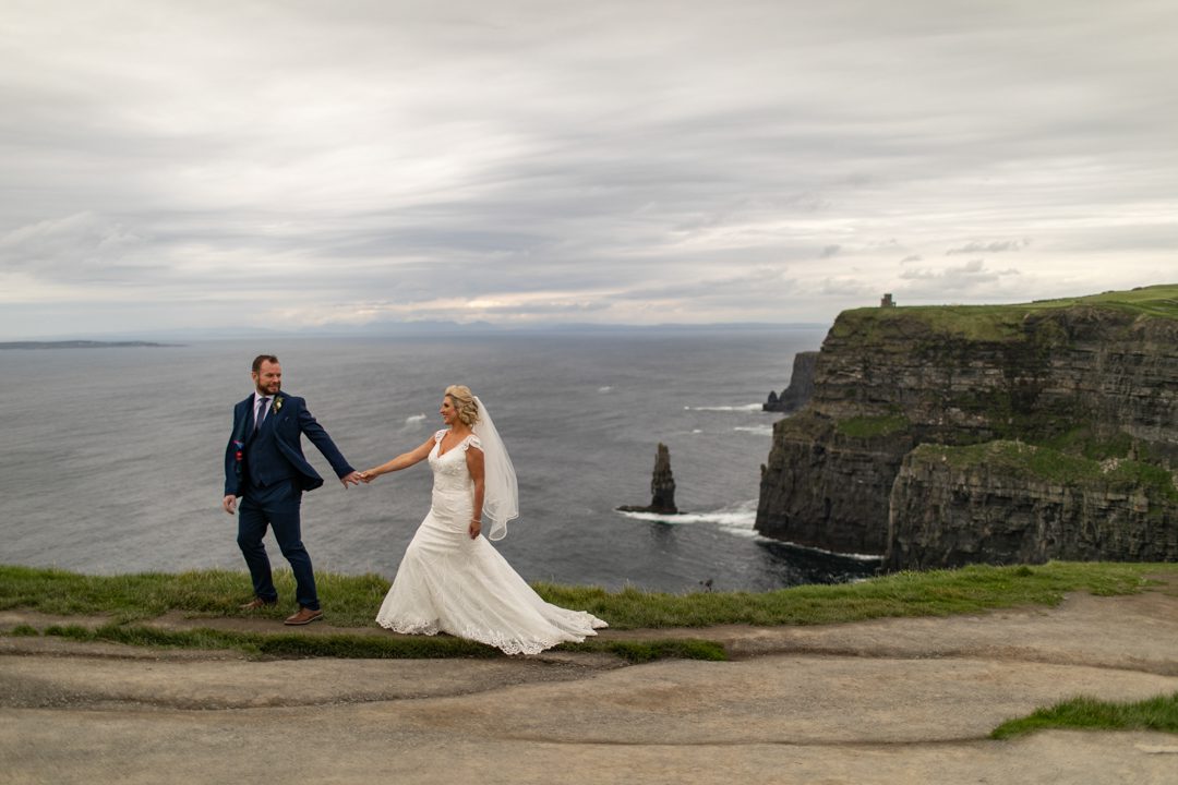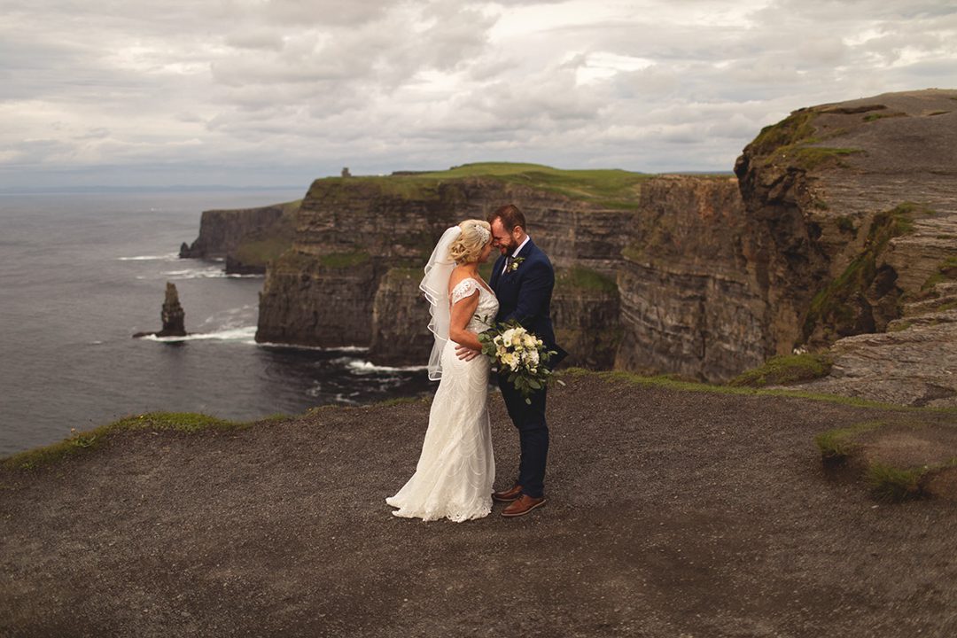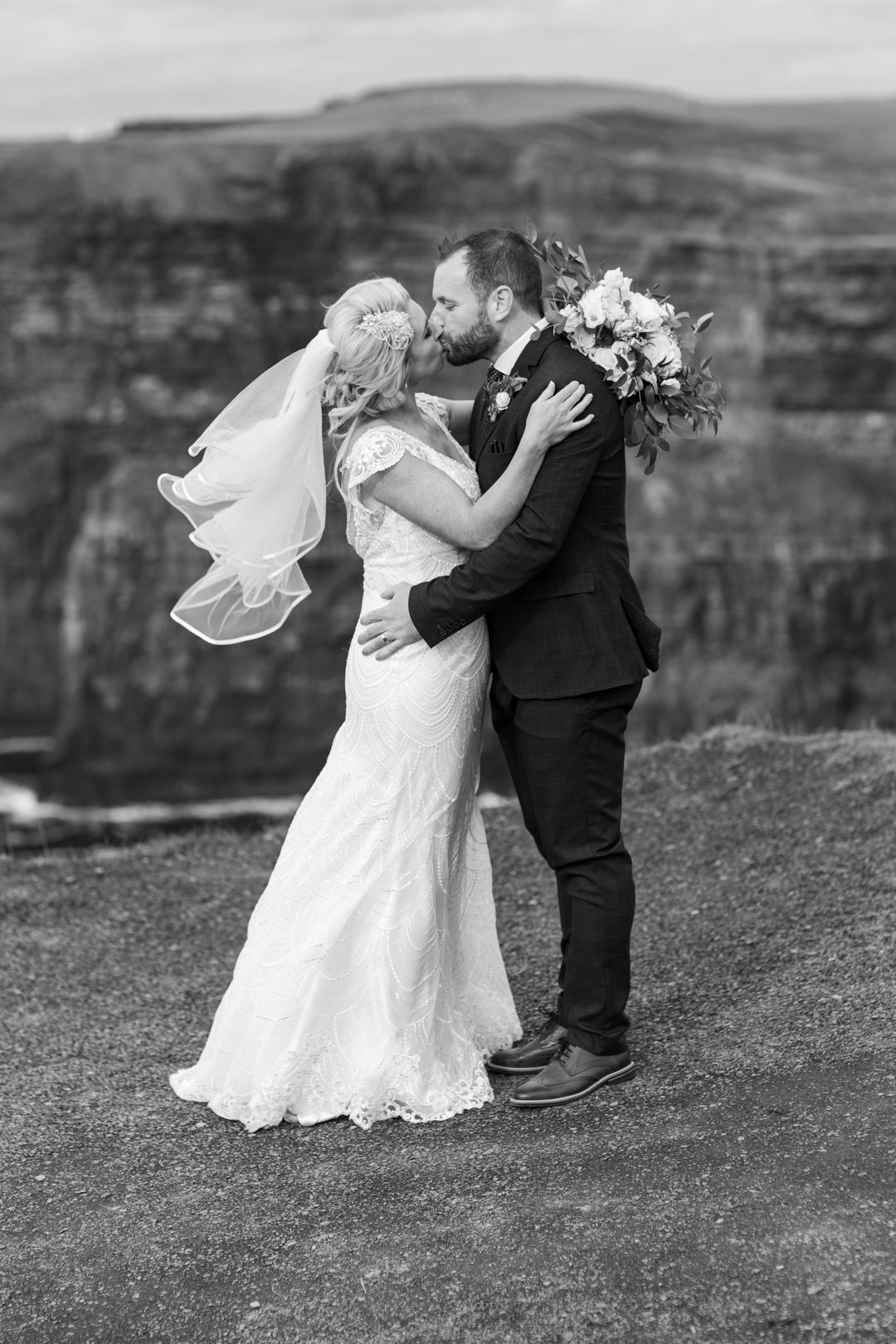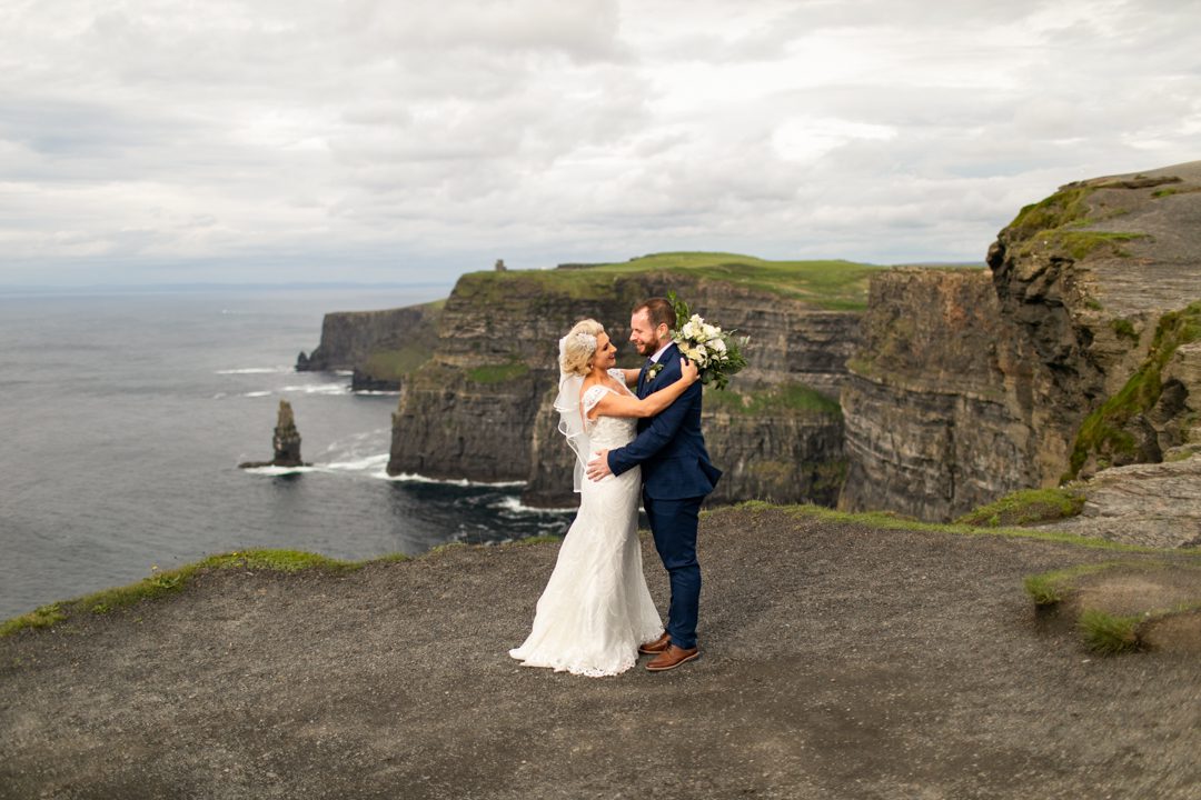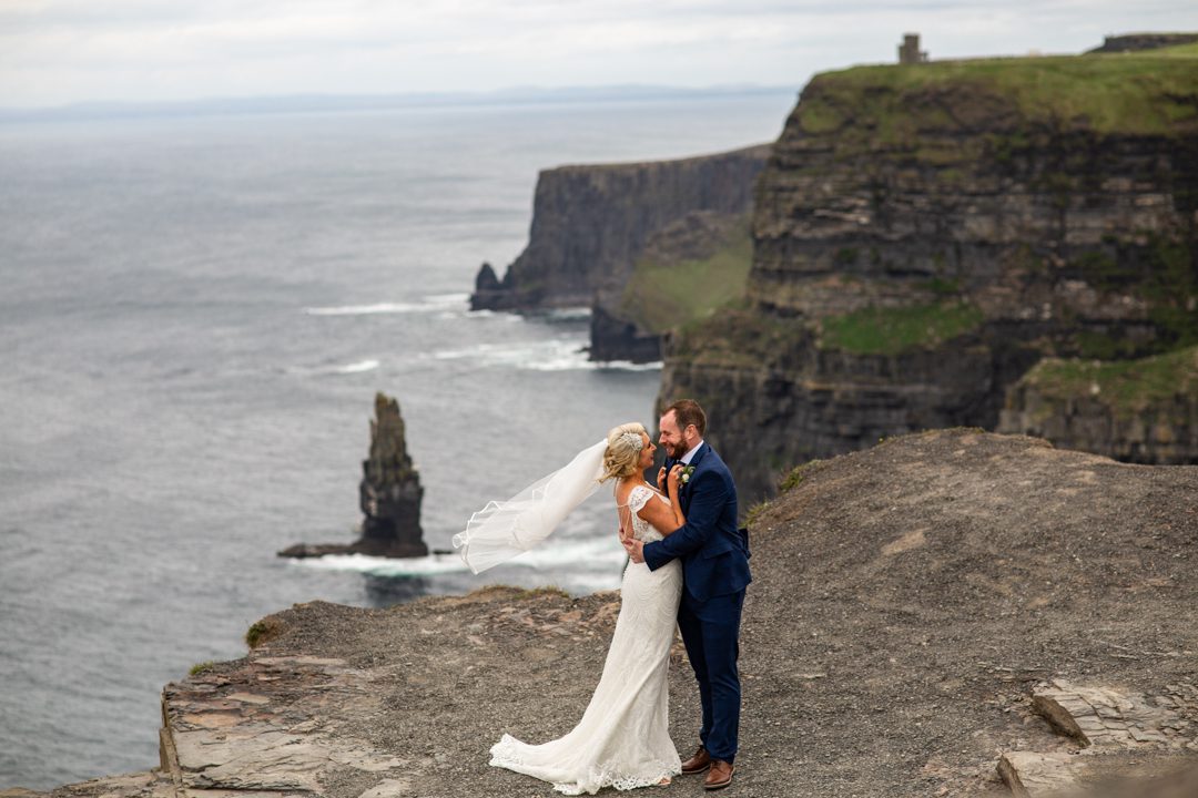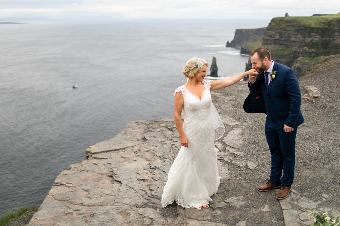 - cliffs of moher, wedding Ireland, irish bride, bride and groom, cliff shot, wild atlantic wedding, irish wedding, irish wedding photographer, wedding at cliffs, cliffs of moher bride, Ireland, destination Ireland, cliffs of moher photographer, Elope in Ireland, cliffs of Moher Ireland,