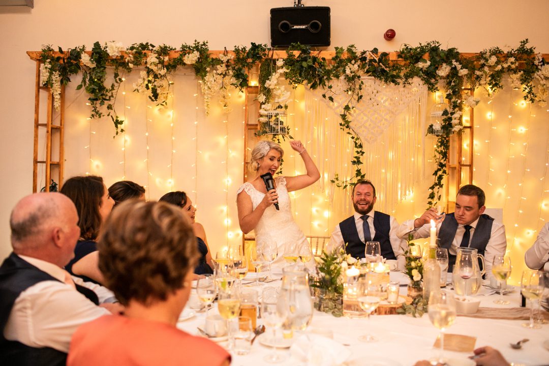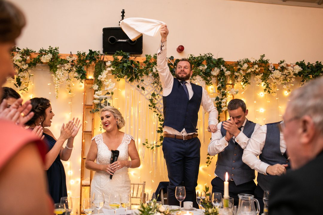 Take five minutes together after your ceremony to take a breather. You won’t regret all the extra bits! We did hangover kits it was definitely a bit of work but so worth it as our guests got great fun out of them. Get all little jobs done two weeks before as there is always more!! Invest in your band, we had Spring Break who were phenomenal, together with air guitars, and the contents of the school drama box made for some seriously uninhibited dance moves and fantastic photos. Actually the music in general we felt was very important in creating atmosphere. Nicola McGuire sang at our ceremony and it was incredible she has such a beautiful voice and was so helpful when it came to choosing our music. It is also lovely to get friends and family involved in the ceremony and throughout the day. My friend Eibhin sang at the ceremony and it was just gorgeous, she sangFleetwood Mac Everywhere. My friend Ruthy read a beautiful reflection which all added to the special atmosphere of the day.