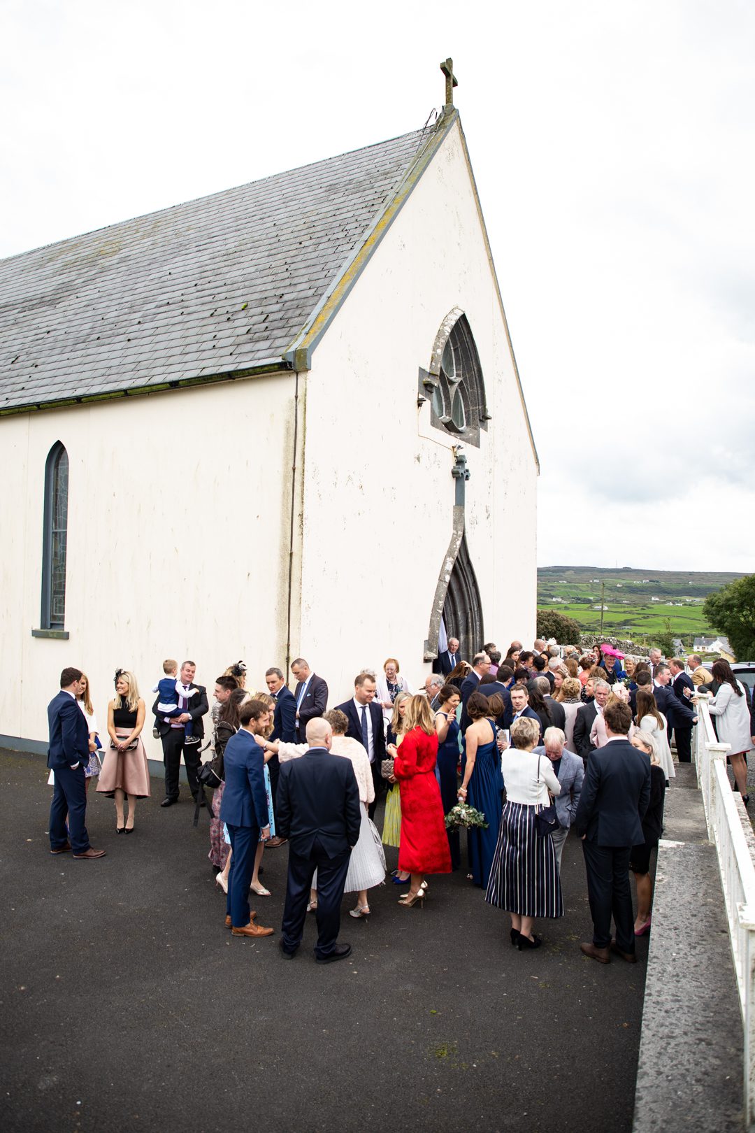 The day went so quickly and everyone tells you to try and take a few minutes out to try and take it in. This is good advice!!We both had great fun the morning of the wedding, I spent the morning with my mum, sister, besties, and Mike’s mum Anne beautifying ourselves, while Mike and the lads went to Clahane Beach for a dip in the Atlantic. My brother James drove me to the church with my dad which was really special. But seeing Mike at the top of the aisle was definitely the highlight! We also really enjoyed our time getting our photos taken up on the cliff it was a lovely time with our friends in truly stunning surroundings. The whole day was just perfect, all the people we love the most in the world in one room helping us celebrate our special day