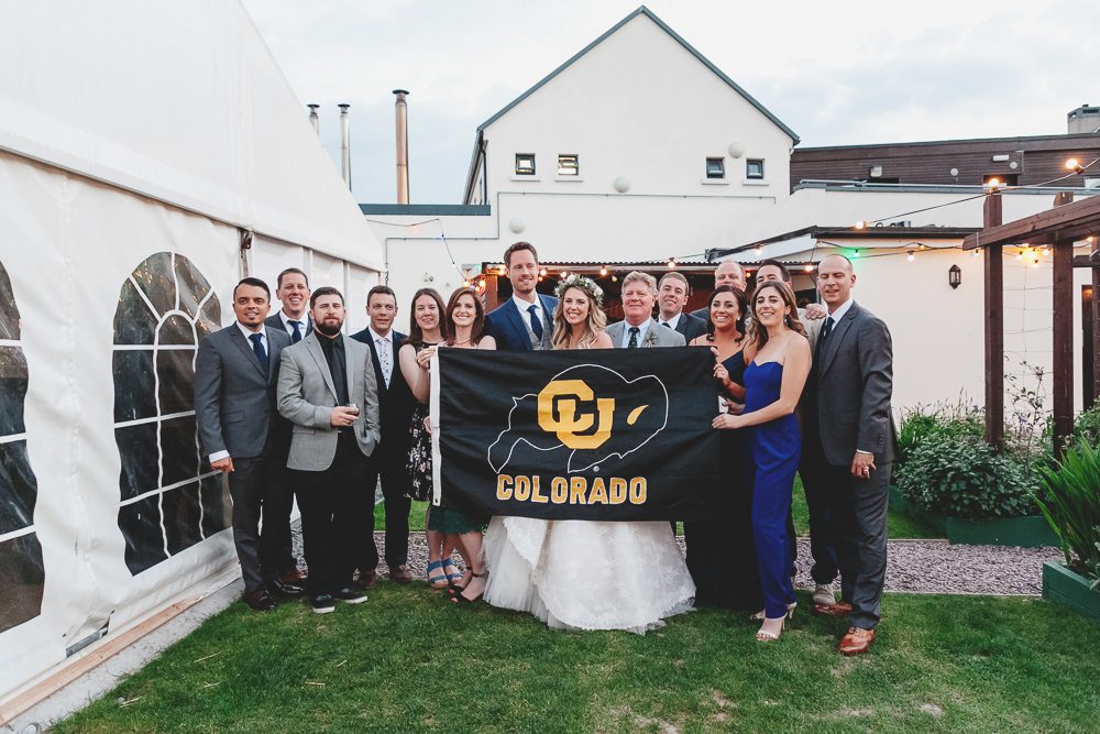 Groom and groomsmen’s suits and ties purchased from — Ted’s Clothiers, Englewood, CO