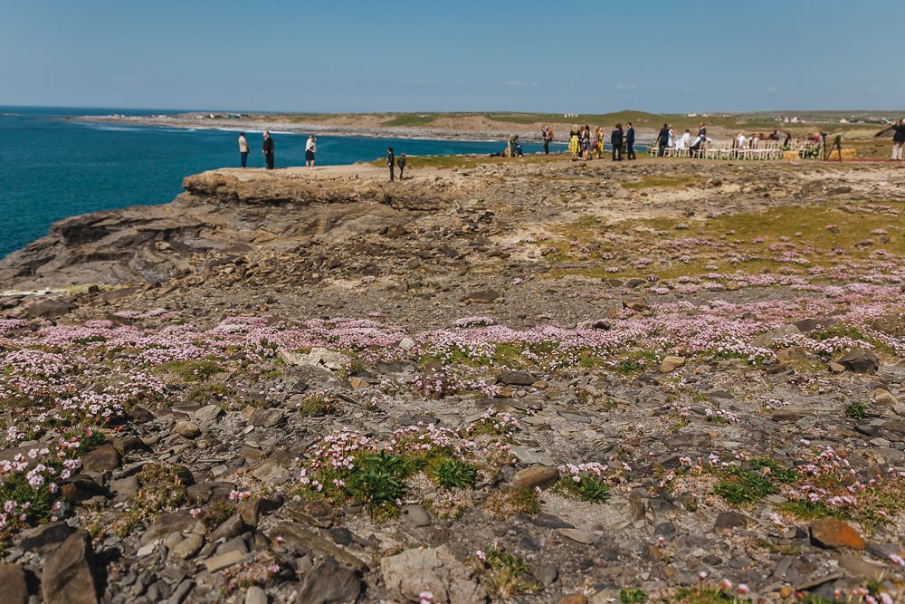 The outline of the week’s events started with a weekend in Dublin with many of our friends. We arrived to Doolin on Sunday and hosted a Welcome Party in the Courtyard at Hotel Doolin. We served Guinness, Prosecco, and Burren Belinis. We then wandered to O’Connor’s Pub for dinner with the group.The next morning, Thomas and I visited the Ennis Registrar’s Office to get our marriage documents in order. At the same time, a large group of our friends and family joined Pat Sweeney on the Doolin Cliffs Walk. We met all of our guests at the Cliffs of Moher Visitor Centre for pictures and enjoyed a wonderful afternoon viewing the sites. Later that night, Thomas’ parents hosted a rehearsal dinner at McDermott’s Pub with family and our bridal party.