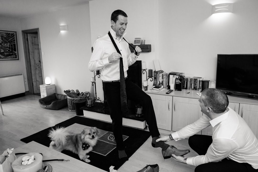 Her assistant Alex accompanied the groom and best man and she looked completely comfortable at every point, even when they were getting changed into their fitted suits lol. Looking back on the photos from that morning, we have so many memories to take with us from the father of the bride seeing his daughter in her wedding dress for the first time, to our beloved dog Bodie trying on his first ever dickie bow. They even managed to capture all the little things, something that many photographers don’t think of so we were hugely thankful for that.