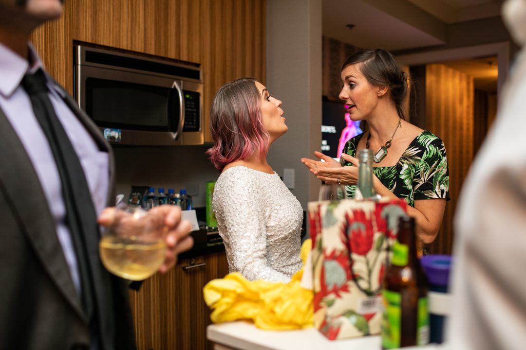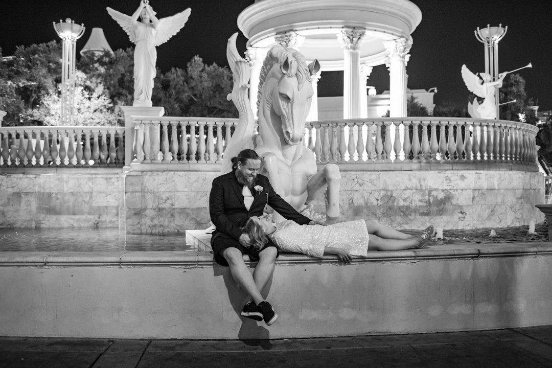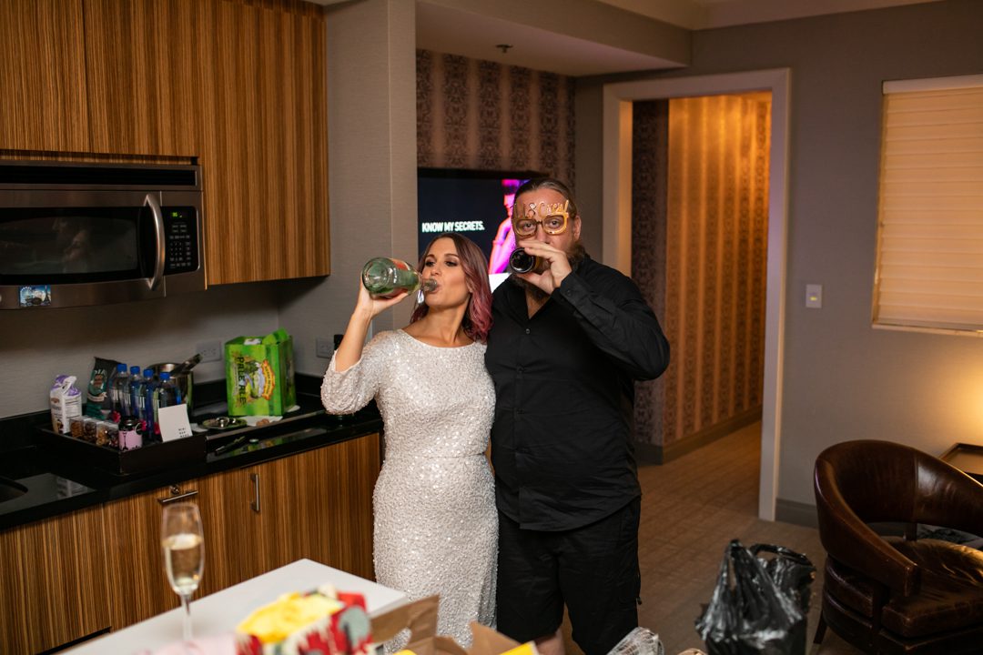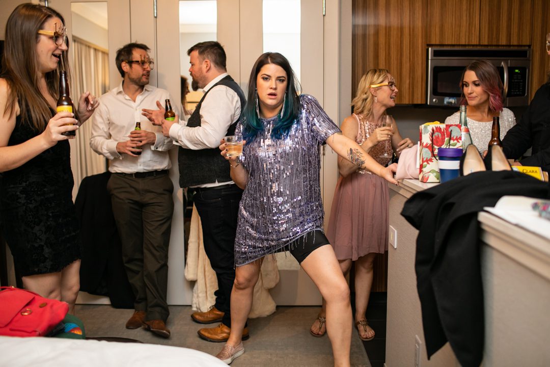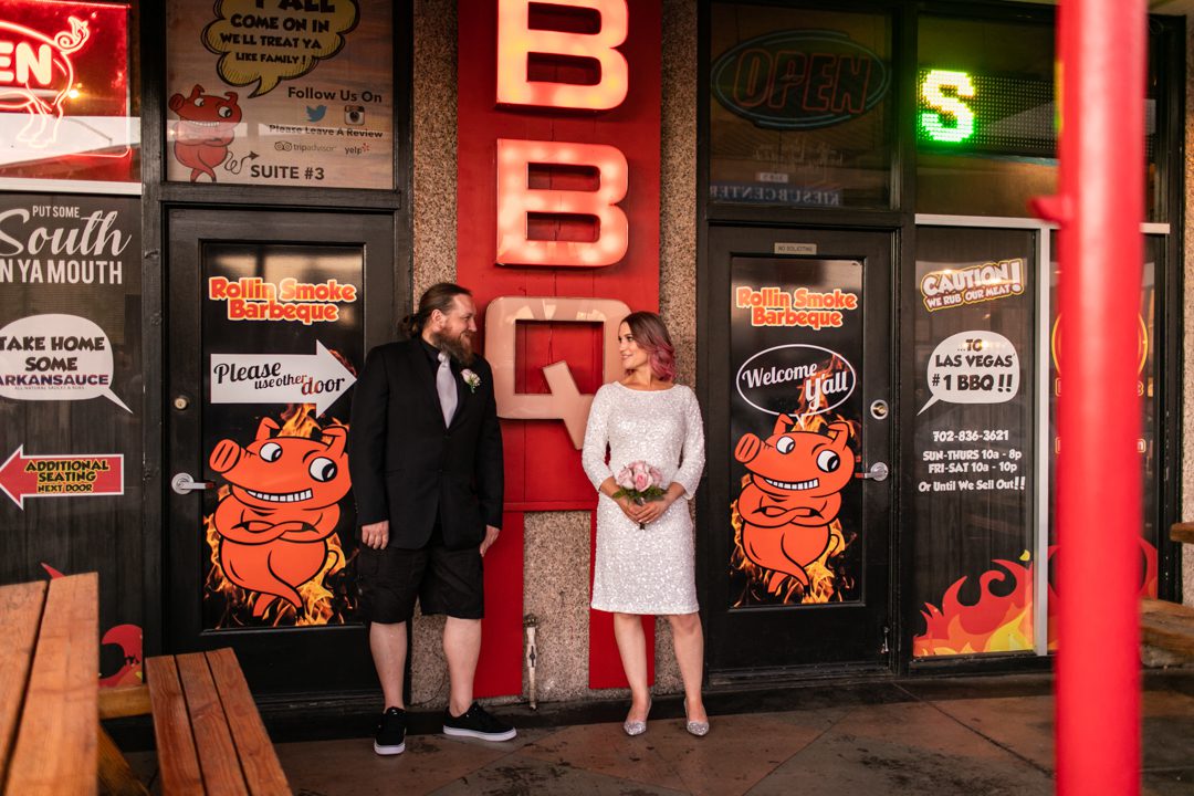 Melanie: All of it. I loved every minute! From breakfast in bed with my husband to be, to getting ready with the girls at the Spa, to strutting around in our Spanx in the hotel room! The limo drive with my super gorgeous bride tribe to what only can be described as the quickest and funniest chapel service EVER…marrying my ‘Stefawn’…. To Rollin Smoke BBQ – laughing, eating and the wonderful speeches, to partying in our hotel room before hitting the casinos and bright lights of Vegas! And of course having fun with Olga while she worked her magic behind the camera capturing every single moment.