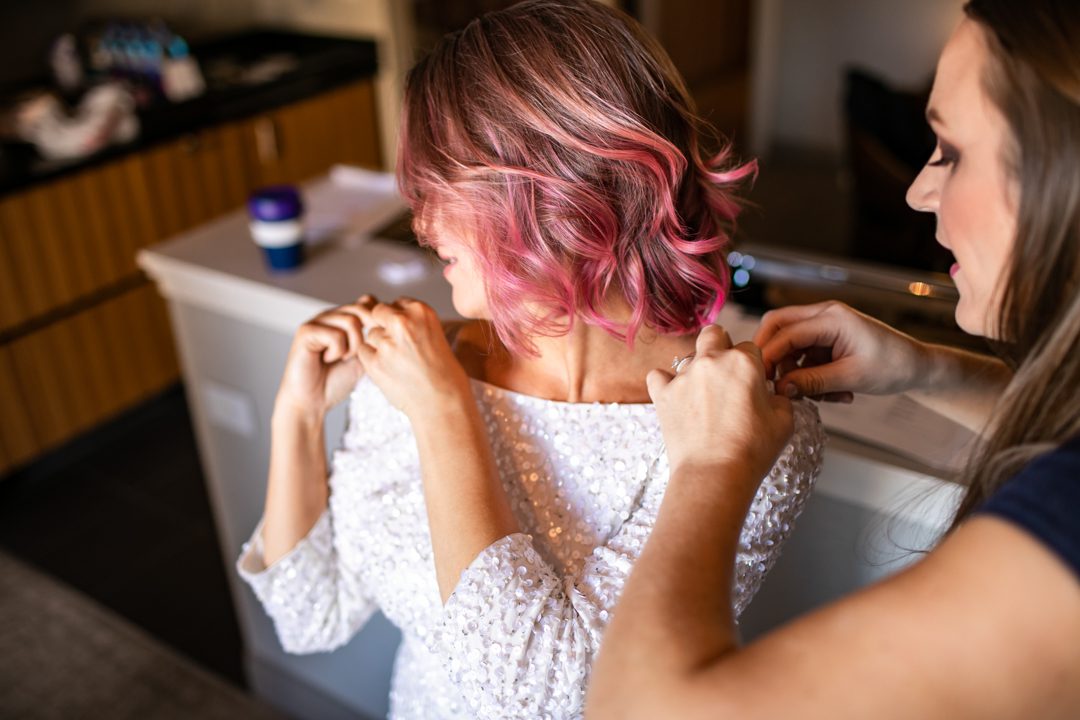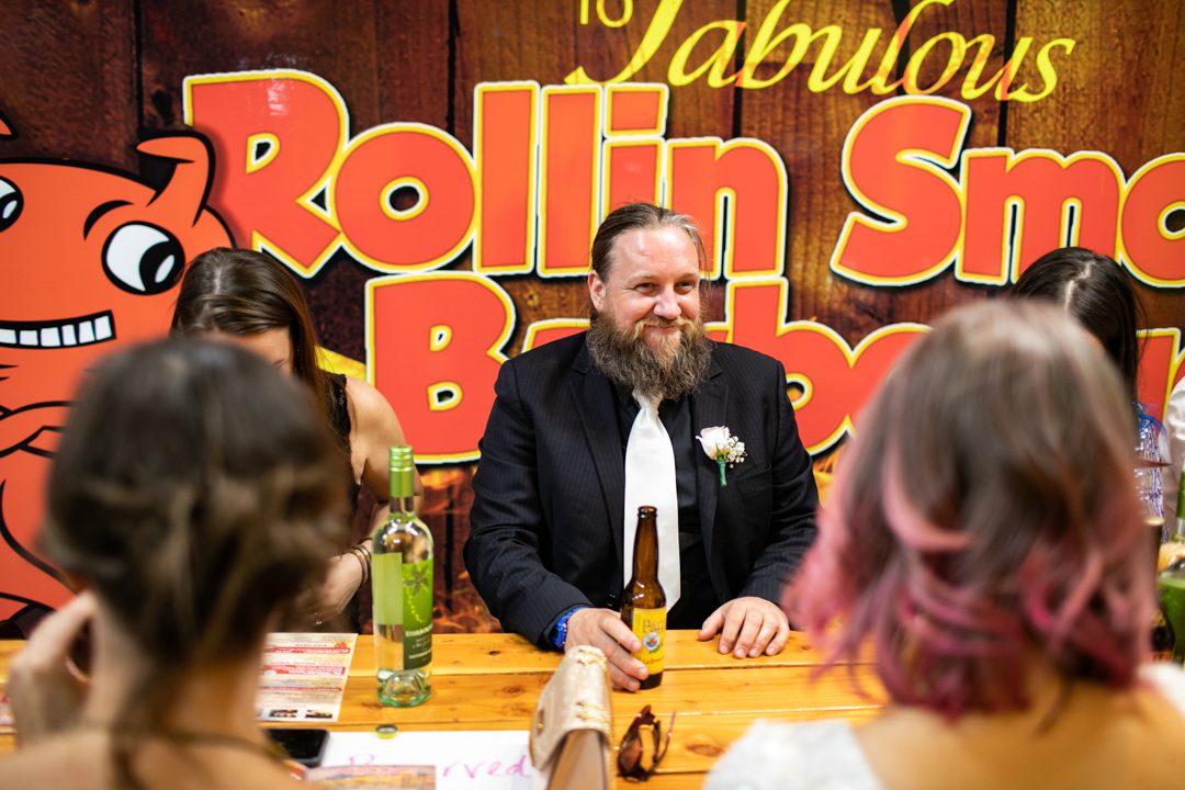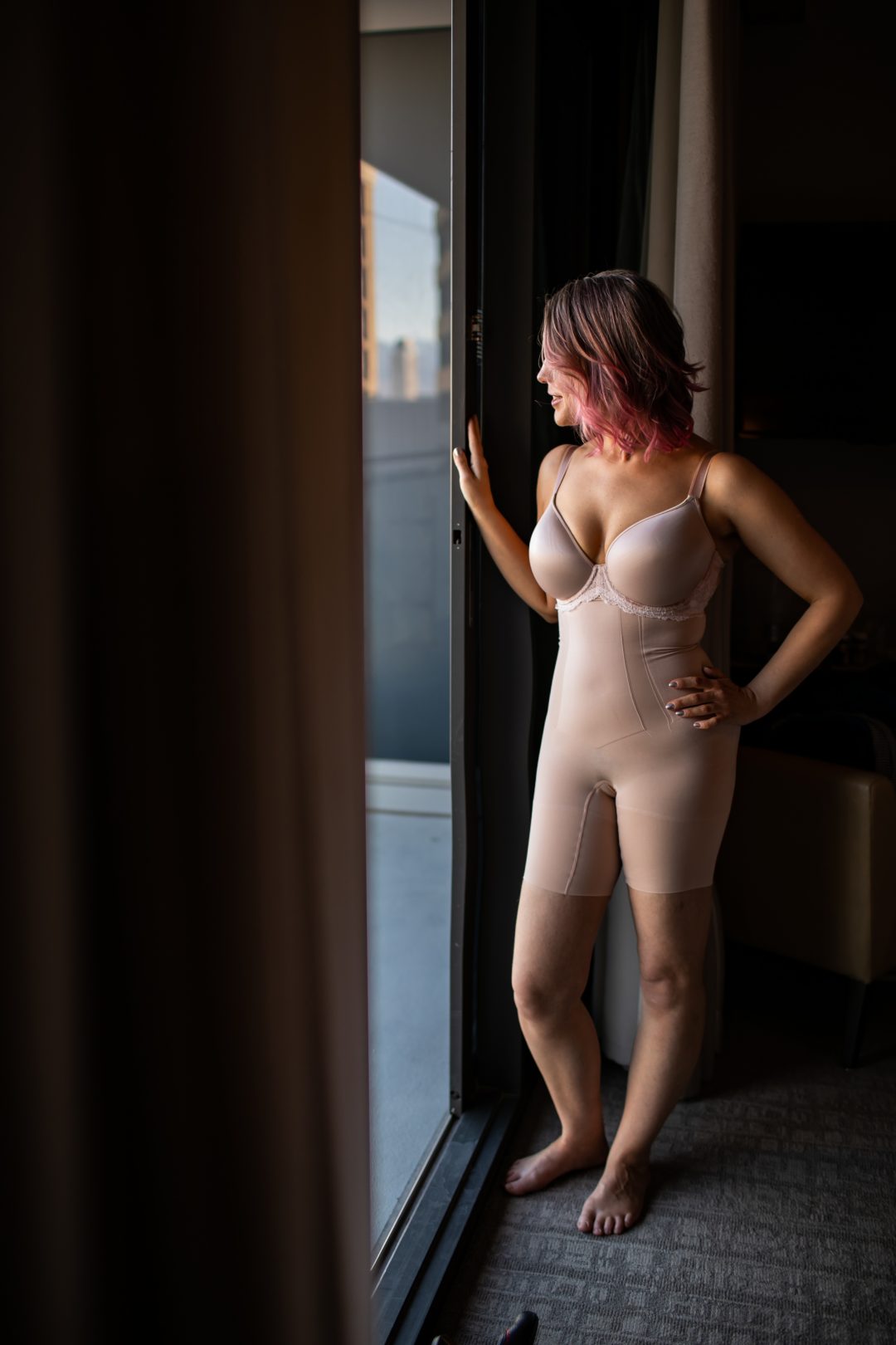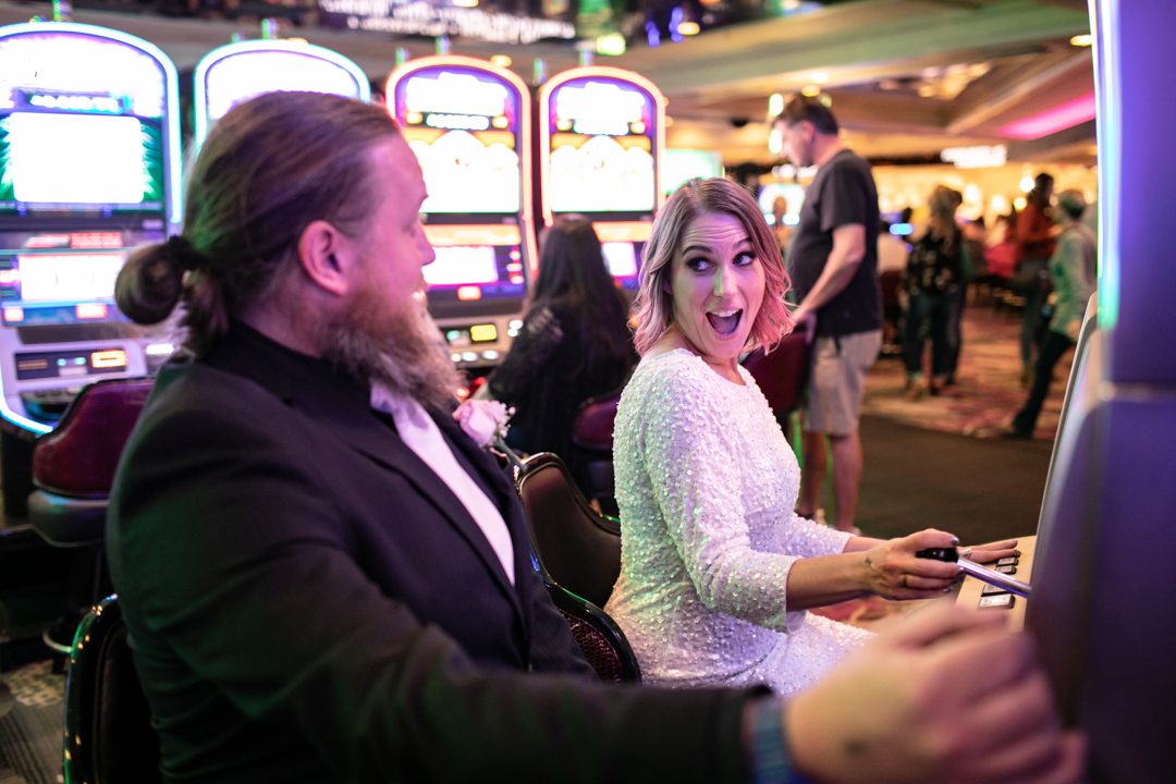 Melanie: All of it. I loved every minute! From breakfast in bed with my husband to be, to getting ready with the girls at the Spa, to strutting around in our Spanx in the hotel room! The limo drive with my super gorgeous bride tribe to what only can be described as the quickest and funniest chapel service EVER…marrying my ‘Stefawn’…. To Rollin Smoke BBQ – laughing, eating and the wonderful speeches, to partying in our hotel room before hitting the casinos and bright lights of Vegas! And of course having fun with Olga while she worked her magic behind the camera capturing every single moment.
