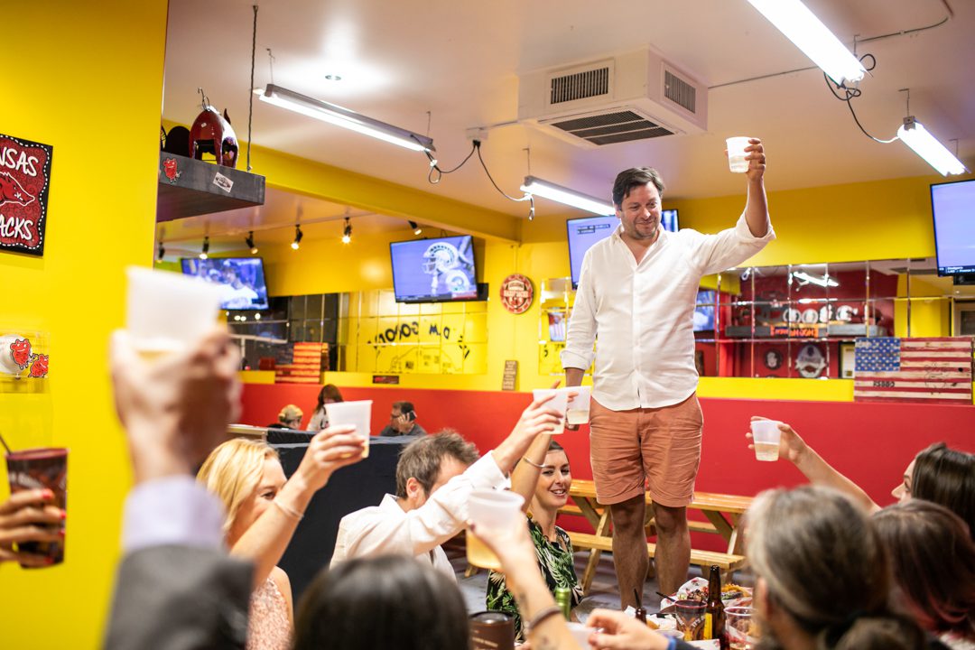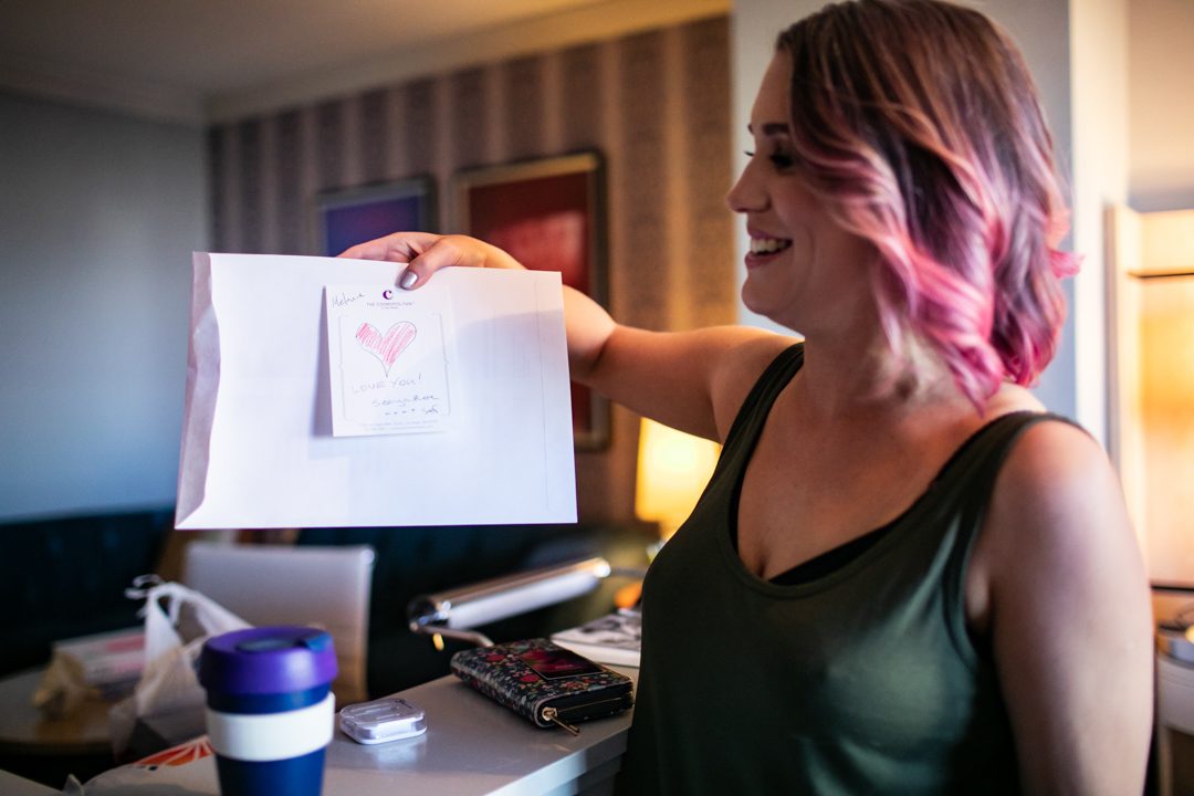 Stef: I got back from surfing late. Mel had kept the kids up and when I walked in they all shouted SURPRISE! There was ‘will you marry me?’ bunting which Melanie had made hanging up behind them. She handed me a card asking if I would marry her in Vegas on our 10 year anniversary literally 3 days later