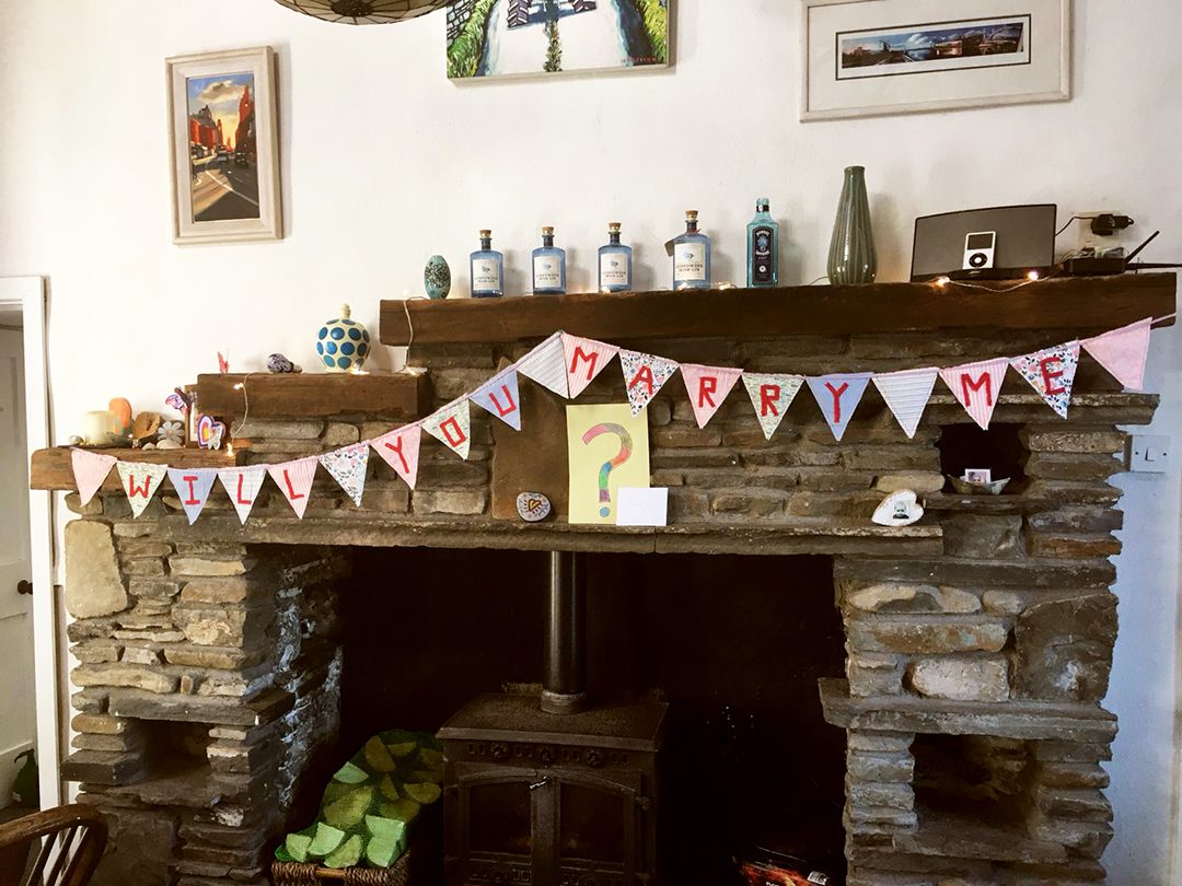Melanie: We got engaged at home. I popped the question with our two children Molly Mae (5) and Asher (2), having sewn ‘will you marry me?’ bunting. The kids were very excited!