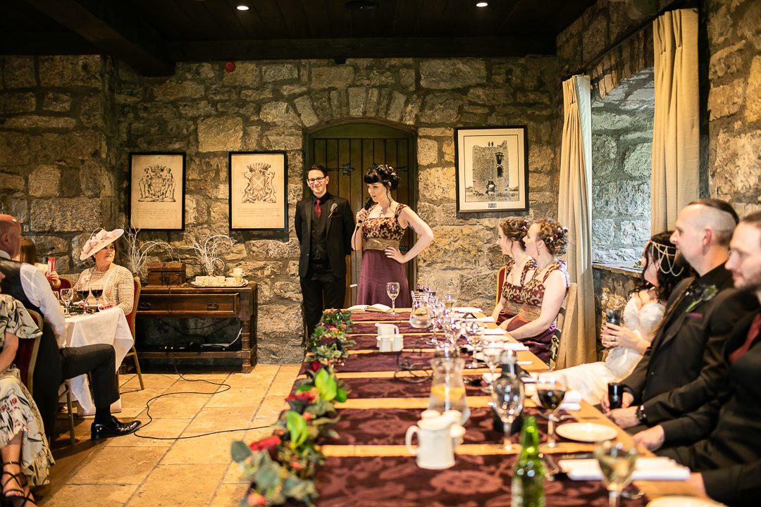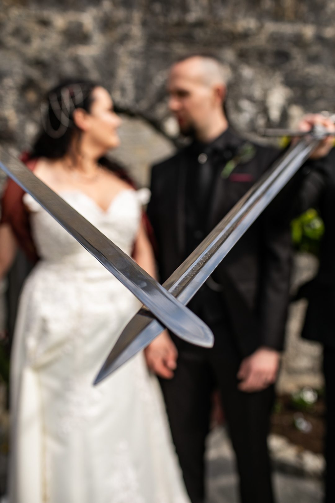 We didn’t have a specific theme, but the castle definitely inspired some elements of our wedding. I had bought Craig a replica sword from Lord of the Rings as an engagement present, as we had a running joke that if I got a nice ring he should get something too. I got my own sword when we visited the Leeds Armory Museum last year. We decided to include these in the day as there is a Viking tradition to exchange swords at your wedding as a promise to protect each other. Also, the expression “Best Man” originally meant your best swordsman, who would protect you from attackers on the day. So our Best Man and Maid of Honour carried our swords for the day, and did an excellent job protecting us.