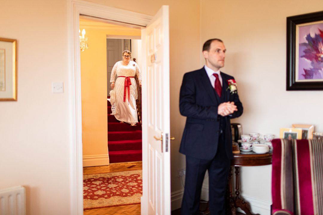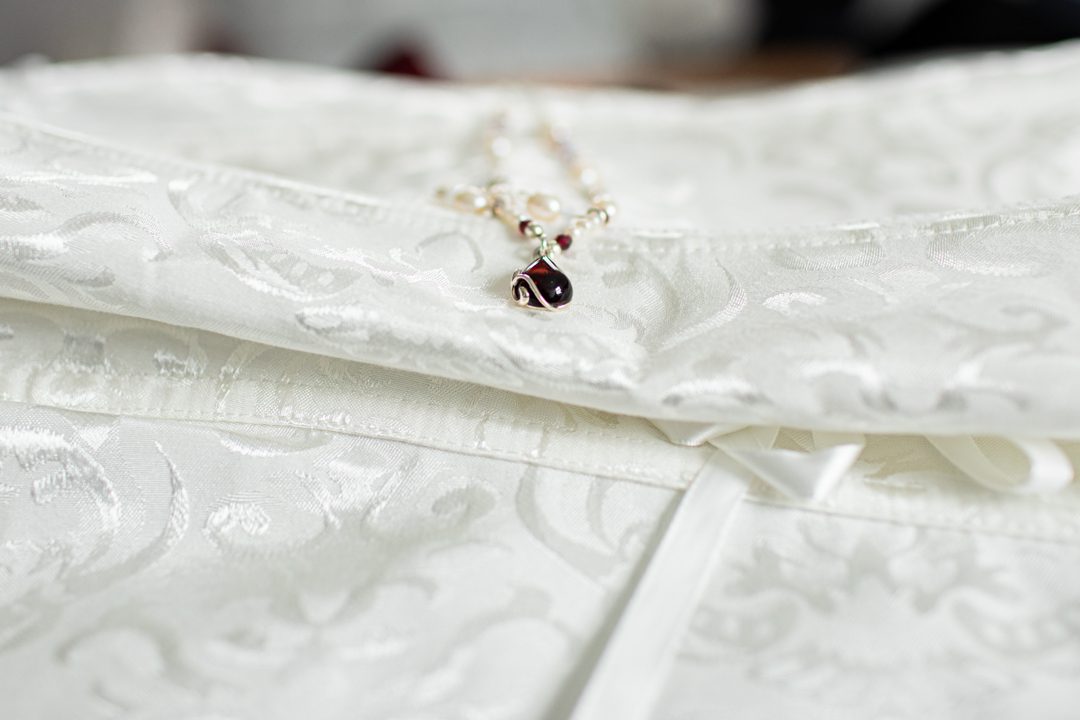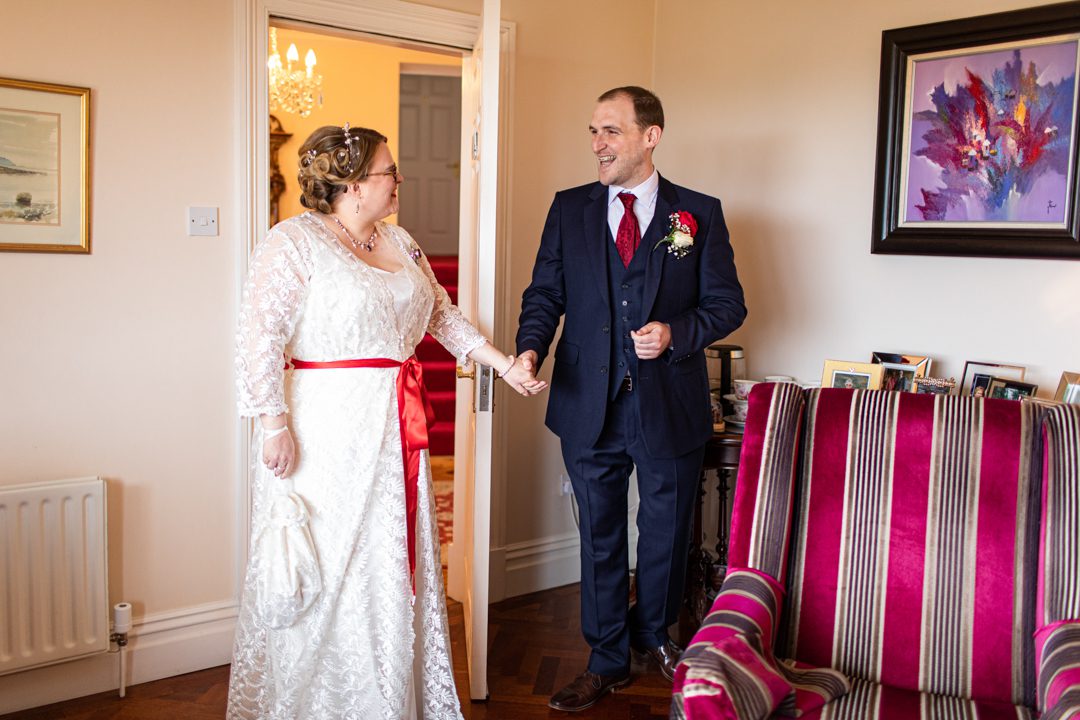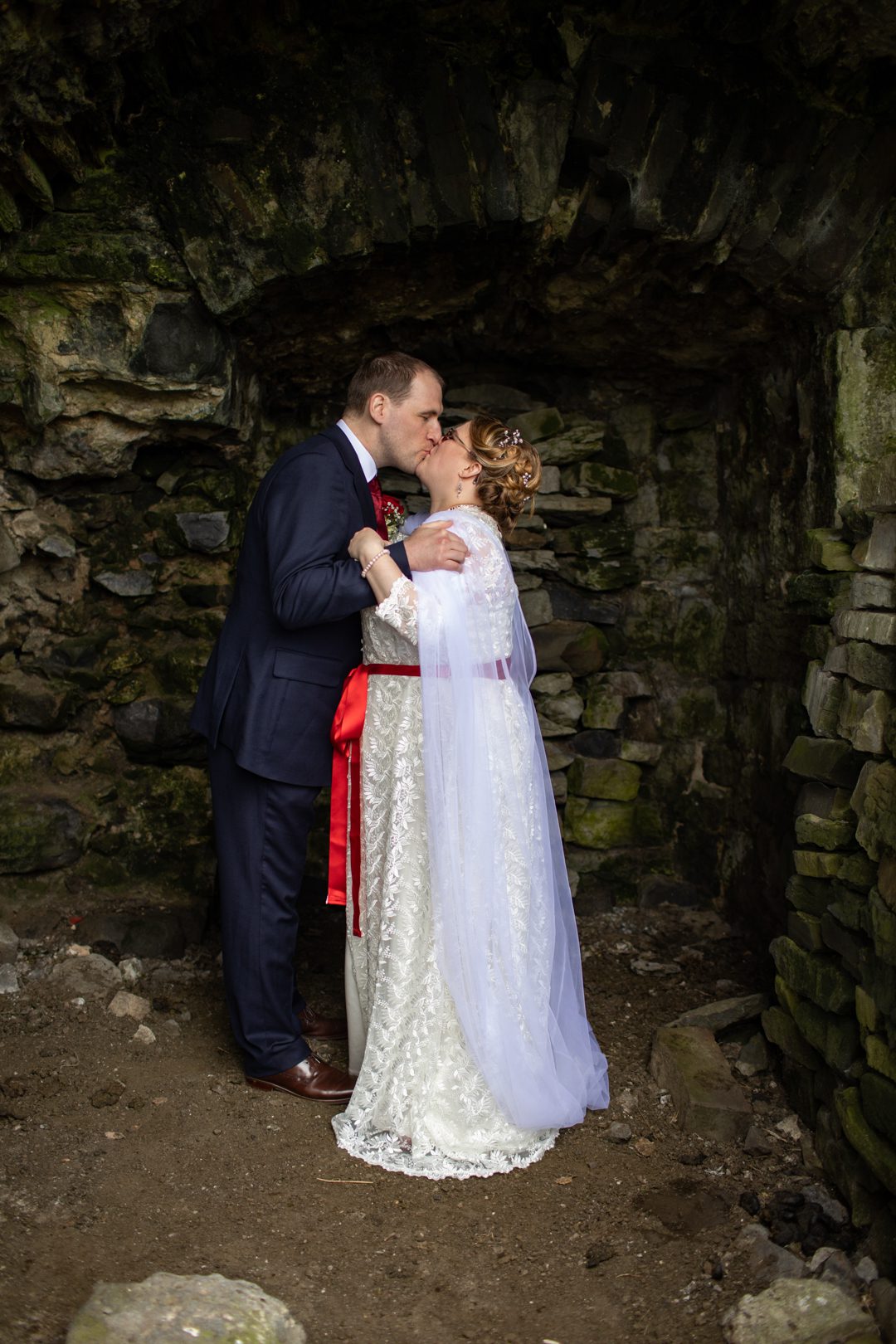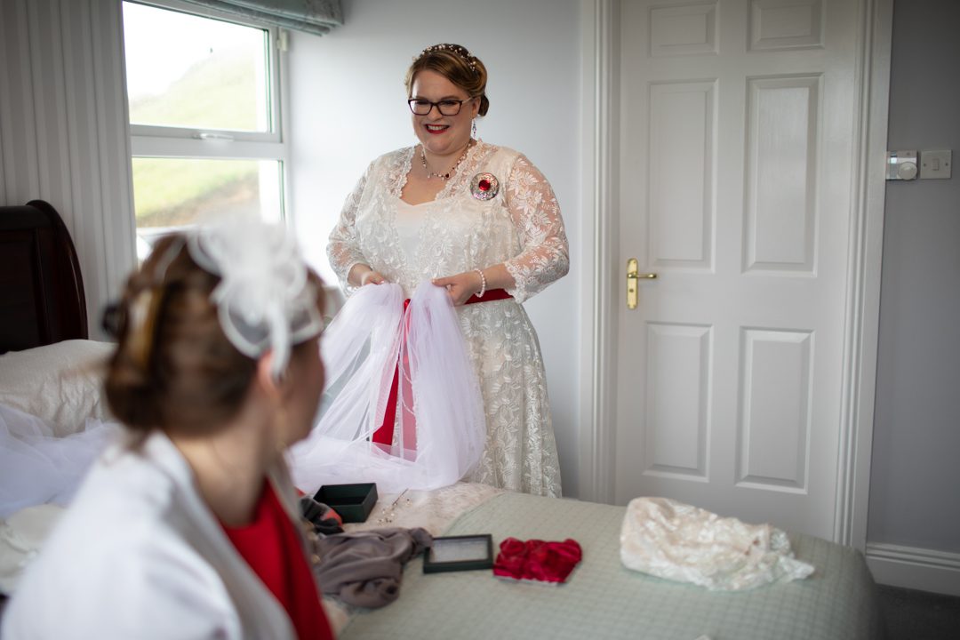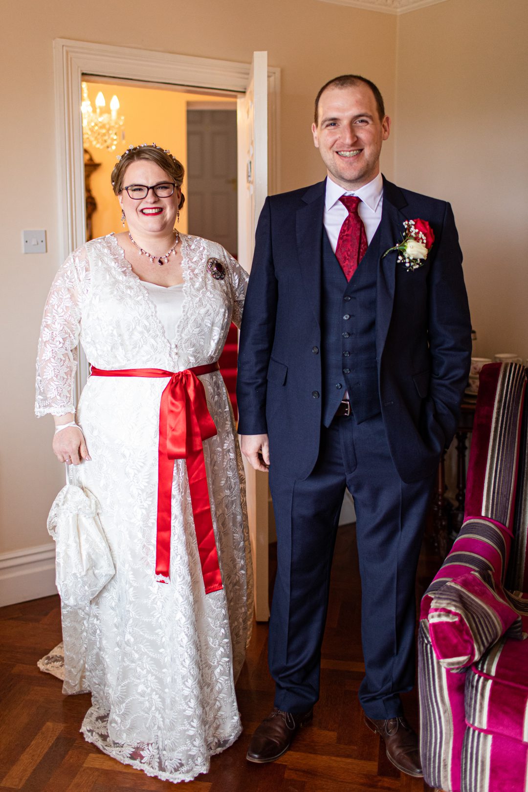My father gave me a roman coin he’d found to incorporate into my wedding necklace as “my something old”. My mother gave me a silver sixpence with her birth year on it for my something borrowed. We have two dogs which are really important to both of us so we decided to be handfasted with their lead – which just so happened to fit in with my colours: red and ivory. The private and intimate feel of the wedding made for a simply perfect day for us.