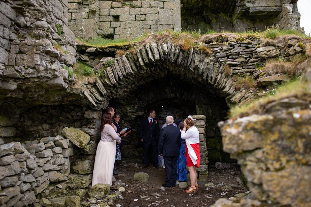 Niall and Darra made our decision easy – they were simply brilliant and that made the selection of Sea View House as our vendor an easy choice. The castle was one of their suggestions and as soon as we saw pictures I loved it and it had to be the place we had the main ceremony. The added bonus was that it was on private land so the ceremony would remain private. It was only on the day of the wedding that we found out we were the first couple to have a ceremony there since the castle became a ruin.