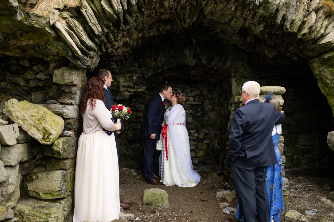 Private Elopement in Ireland, Handfasting Ceremony In Ruined Doonmacfelim Castle – Doolin E&J