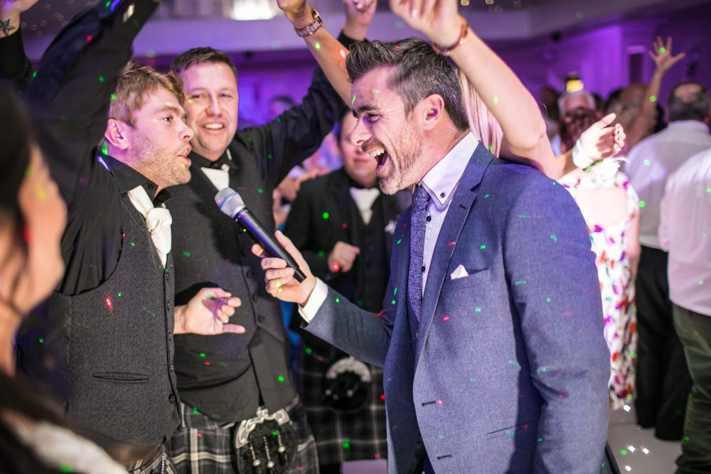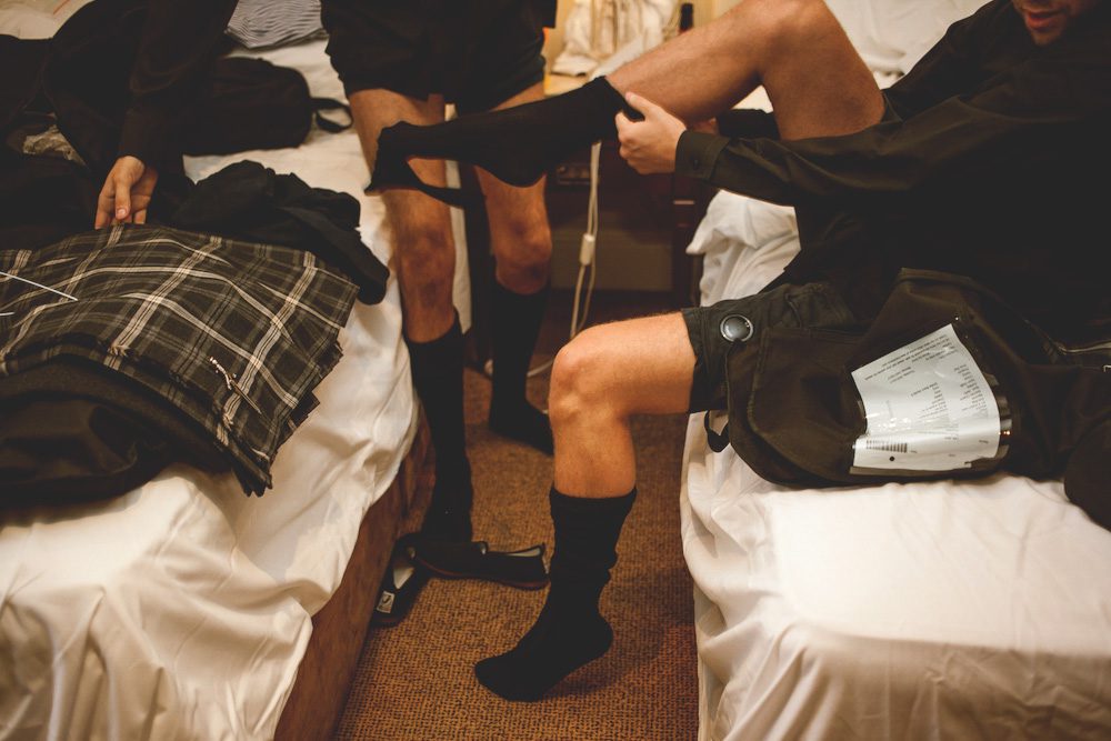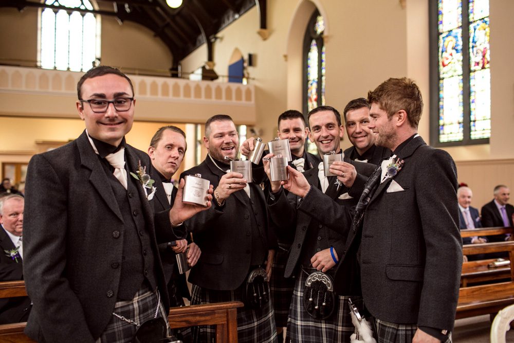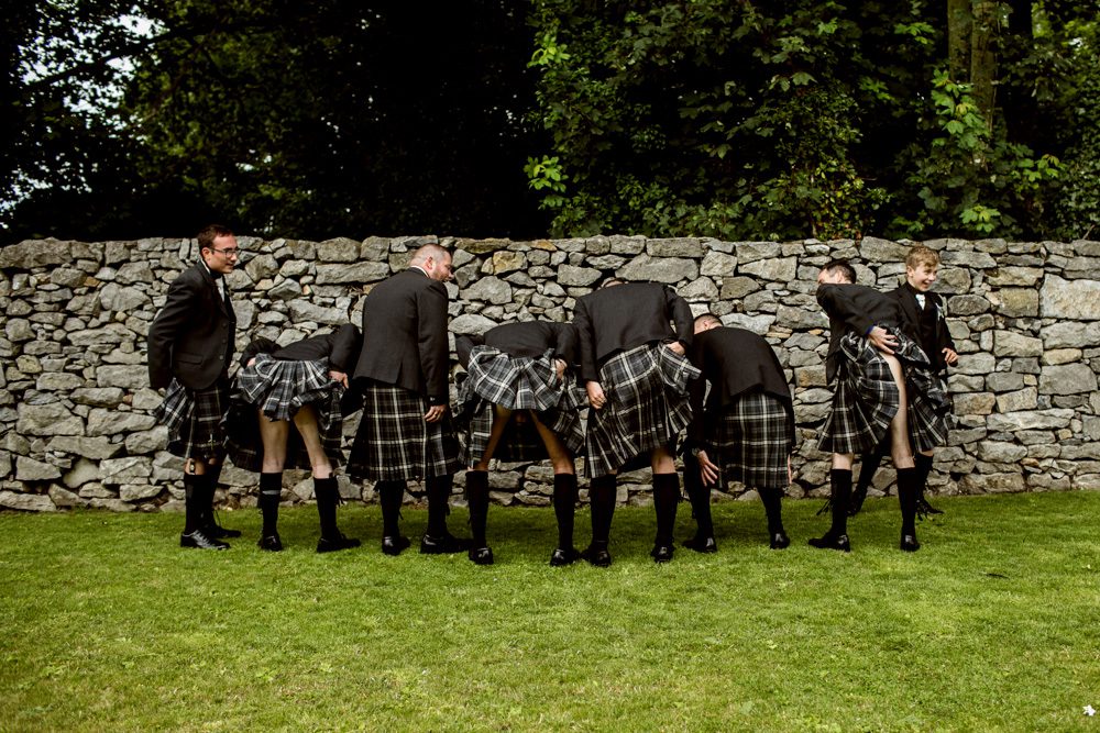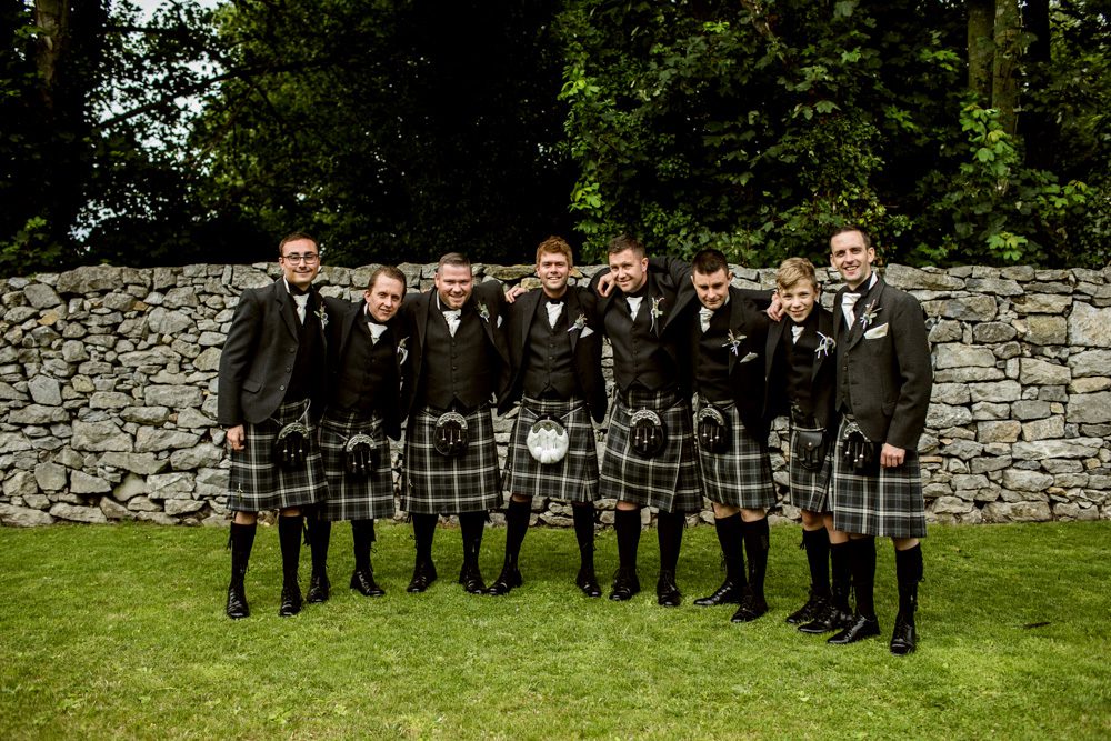 • Groom(smen)’s suits: Lee and his groomsmen all wore kilts. The tarten we chose was ‘Hebridean Storm’