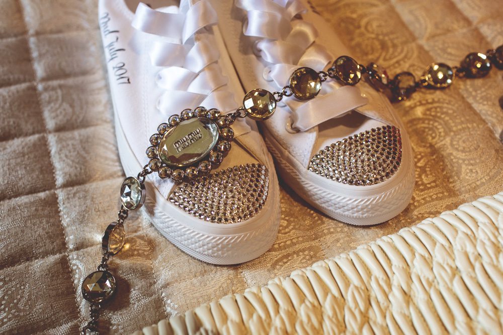 • Shoes: Niamh is a big fan of shoes and and her wedding shoes were a dream come true – a pair of her very own Valentino’s! Lee also bought Niamh personalised bride converse which she put on for dancing at night time!