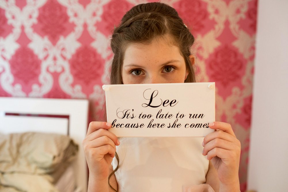 Two days before the wedding we went for a family meal and the wine had been flowing! Lee woke up in the middle of the night (still a little drunk) and mistakenly took the walk in wardrobe to be the toilet. Niamh woke just in time as Lee was aiming right for her beautiful wedding dress which was hid away under hanging bed sheets! Thankfully the dress came to no harm – Lee on the other hand got the fright of his life from Niamh’s screams!