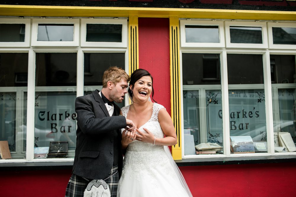 One other funny incident was when we were travelling into Bunratty Castle Hotel from Bruff and just as we were arriving at Bunratty Lee realised he was bursting for a pee! We knew he wouldn’t be able to run to the toilet when he got there as all our lovely guests would be waiting so we pulled over on the motorway in our beautiful wedding car and Lee (in his kilt) got out and went for a pee on the side of the road whilst his new wife remained in the car sipping champagne! As you can imagine it caught the attention of lots of cars passing by!