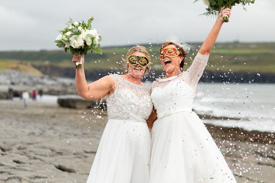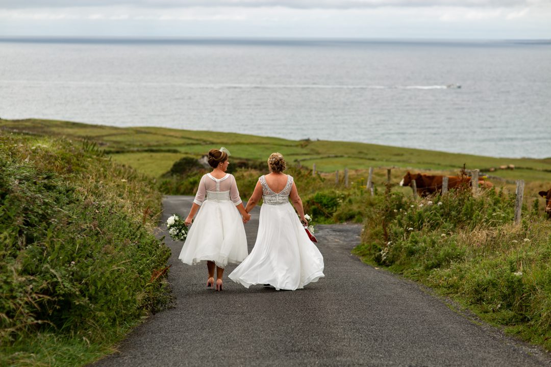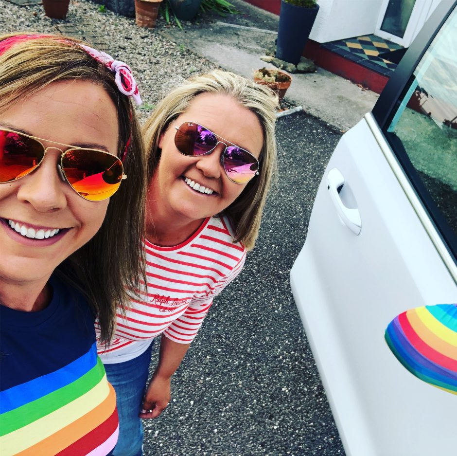 One of our nieces came up with the idea to get Pride Wing Mirror Covers for family and friends arriving in Doolin, two days before the big day. She’d packaged them up with a label saying “Keep an eye out for others on your drive to Doolin. Beep Beep!” It was the most exciting journey ever, looking out for pride flags coming from all different directions on the motorway and the country roads… The end result was a convoy of cars with pride flags arriving into Doolin on the same day as us. It was such fun! The Hotel had the pride flag up outside all week; and for the two days before the wedding, our families and friends were sporting different versions of flags whether it was on their jumper, their runners, their kids or even on their dogs… Loved it all!