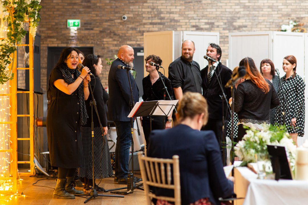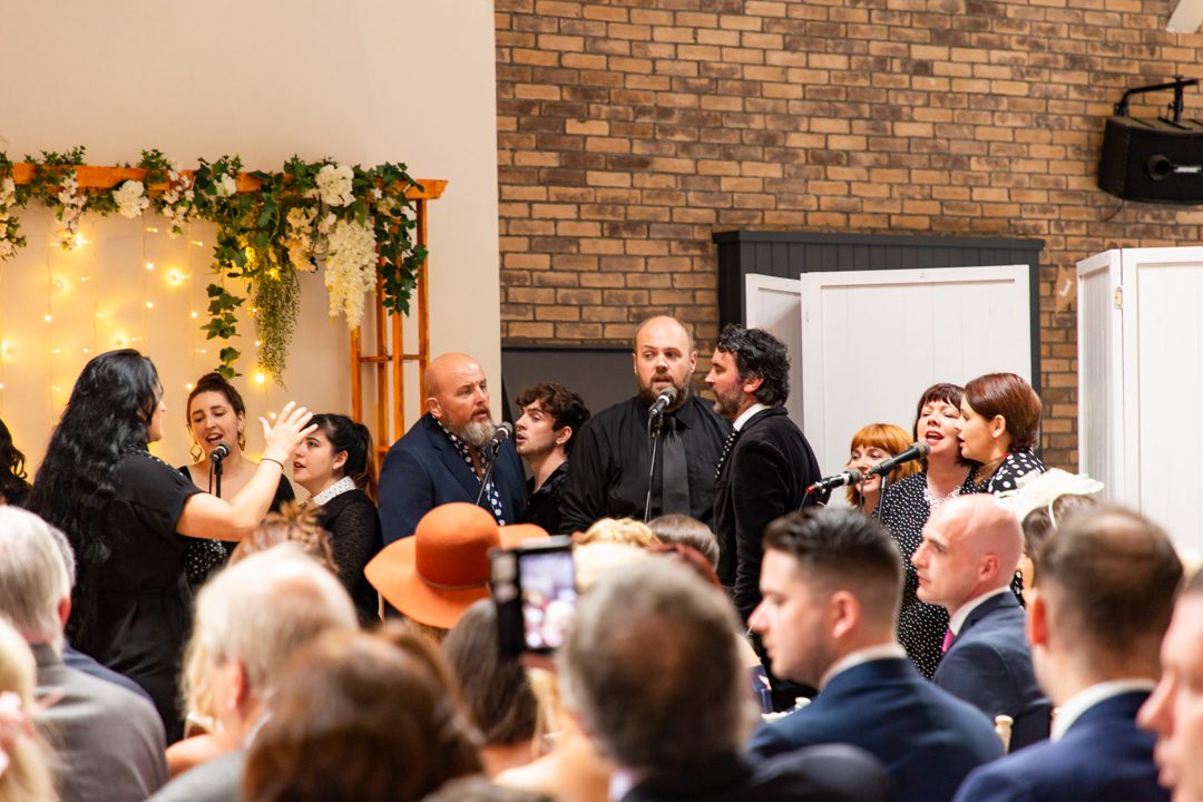 We walked into ‘Lovely Day’, followed by ‘Amazing Grace’, ‘This Little Light of Mine’, ‘Your Love Keeps Lifting Me’, ‘Aint No Mountain High Enough’, ‘Signed, Sealed, Delivered’, ‘Forever Young’, and then left to ‘Oh Happy Day’… The Inishowen Gospel Choir nailed every one. Col’s Mam & Dad are not with us any longer and we figured if we had very emotional music during the ceremony, we’d lose our composure… so we wrote to Inishowen Gospel Choir and begged them to bring some soul to the day. They travelled 5 hours (one way) and lifted everyone’s spirits. Instead of tears of sadness, there were tears of joy and they raised the roof with their harmonies. They were just magical and created such a happy and joyful vibe to the day.