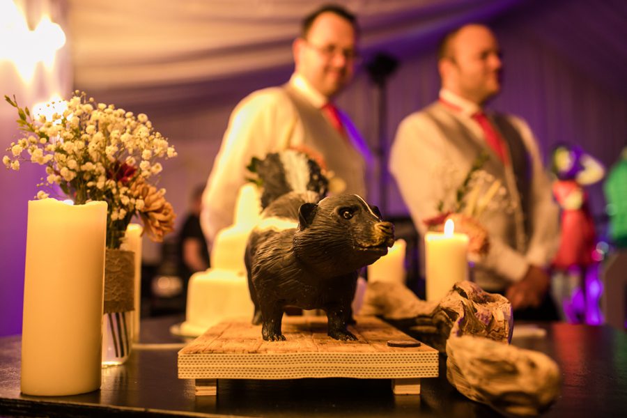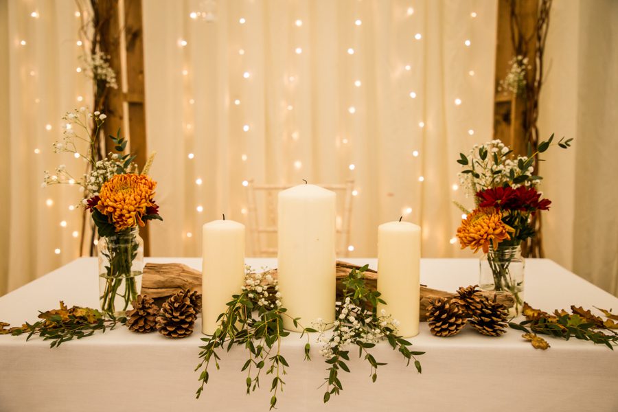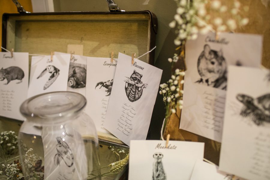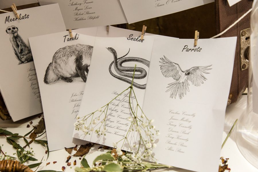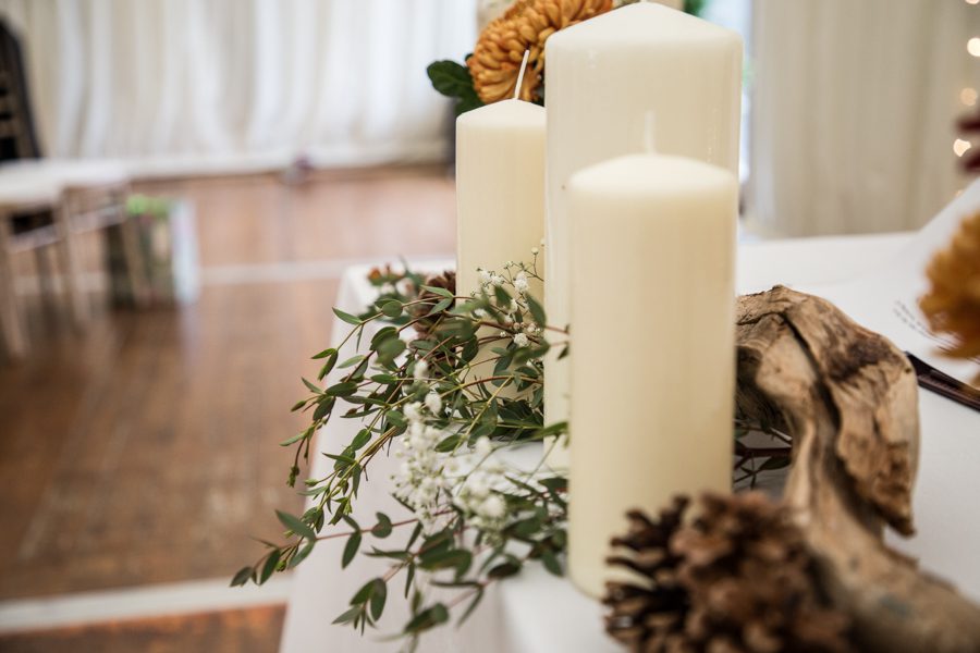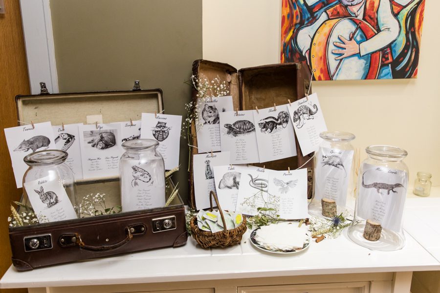 Being November, we decided to go for an autumn type theme with much of the décor being natural autumnal colours. We also had a bit of an animal theme too with the cake, table names, etc as, owning our own little zoo, we wanted the day to represent our lives a bit.