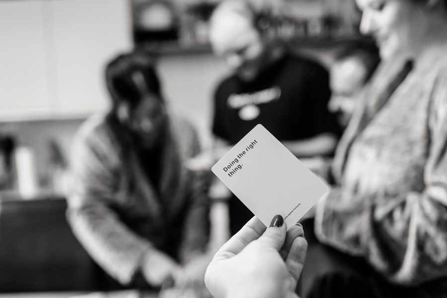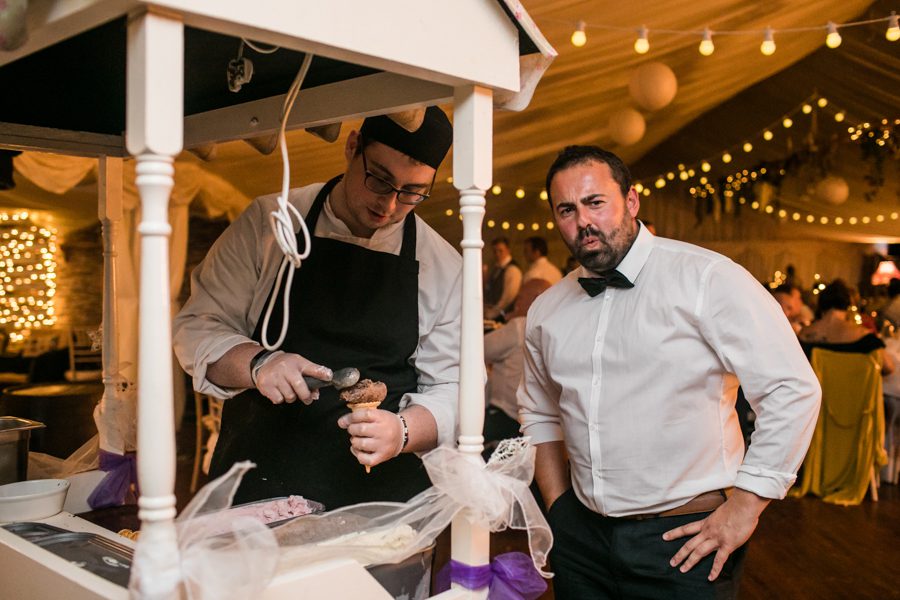 Ben: Seeing everyone’s reaction to our unconventional wedding cake.