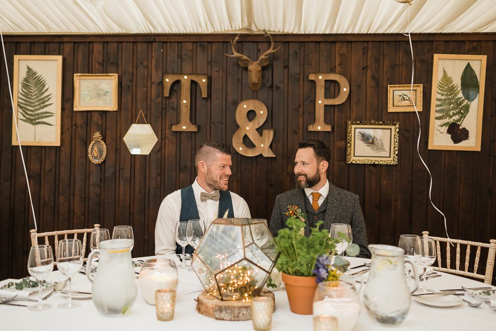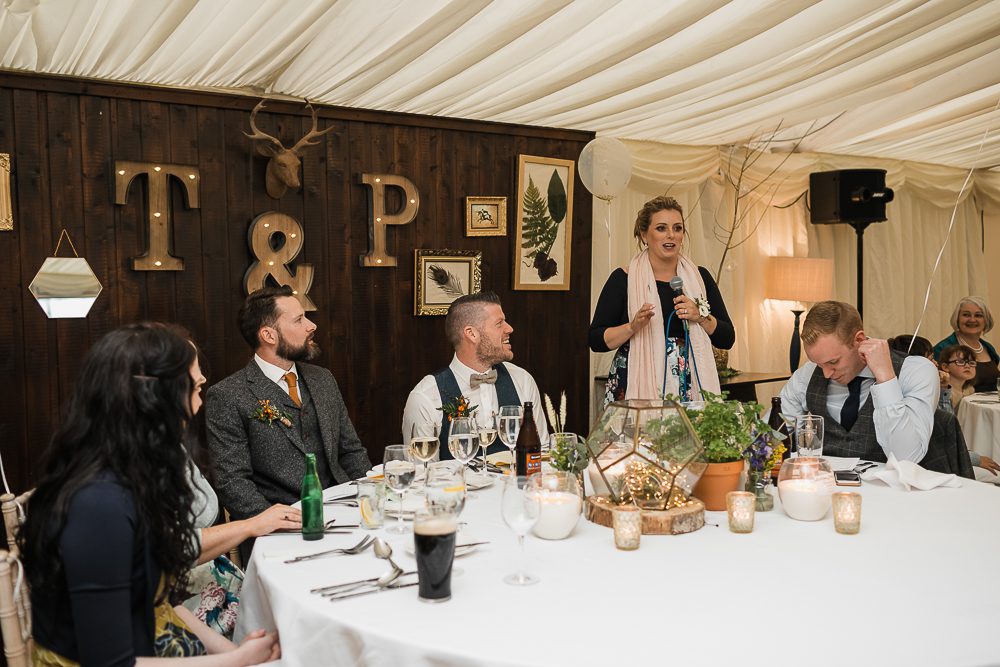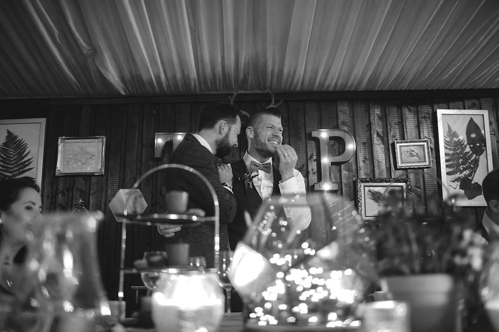 We had a humanist ceremony in the Hotel marquee. Our celebrant Dara was great to deal with and allowed us to make the ceremony our own. We had readings from TJ’s sister, Elaine, and Pete’s brother, Robert. It turned out to be a very emotional ceremony, which was not what we expected. We also incorporated a tree potting in to the ceremony. Our mothers both brought a pot of soil from their gardens. They added this together around the roots of a small apple tree, which we will plant on in years to come. It made the occasion really special and lots of people commented on how lovely it was.