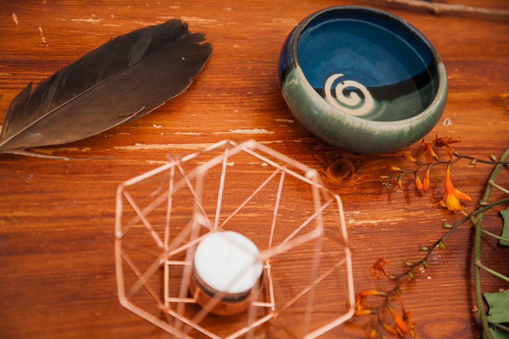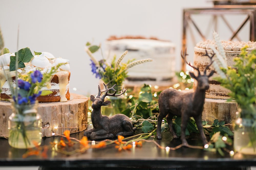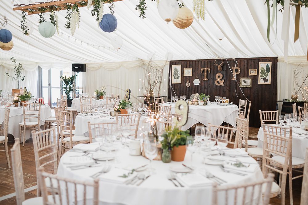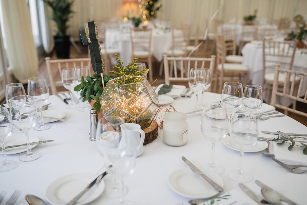 Our ‘theme’ was simply everything we liked. We decided to make the place feel like an extension of our house with our wooden backdrop, lamps & soft glows from candles & lots and lots of plants around. We really like natural earthy colours and textures so we incorporated these in anyway we could. We used herbs as our centre pieces with homemade table numbers which added a bit of a light hearted disco feel for the evening as they reflected all the different lights around the room!
